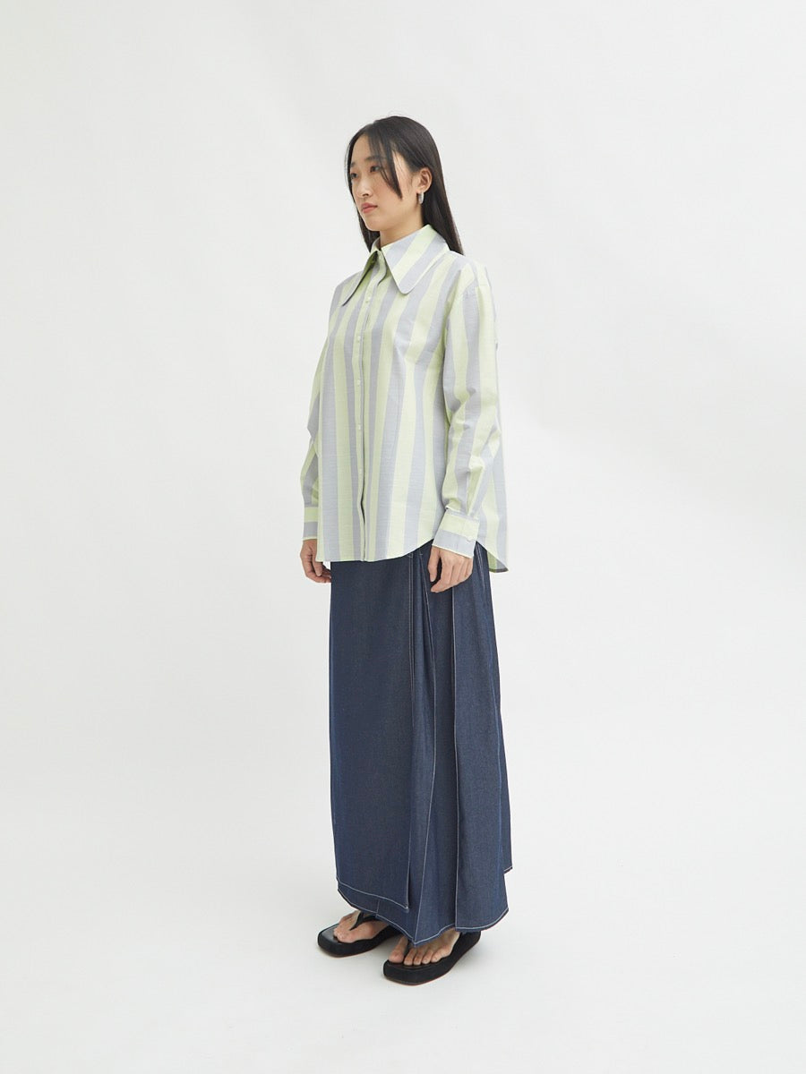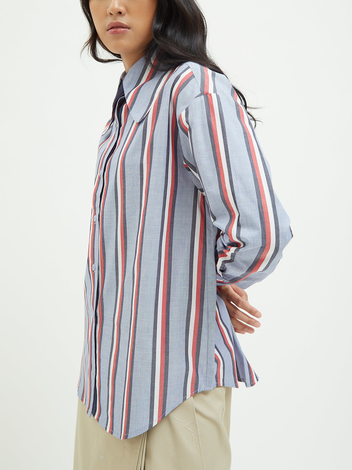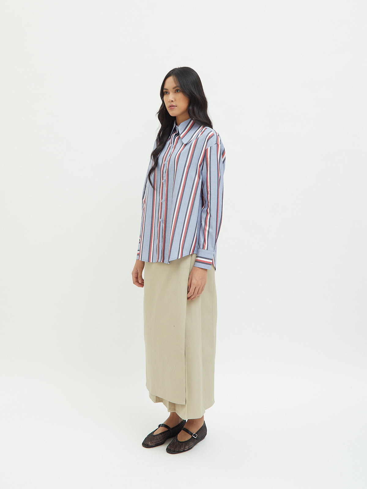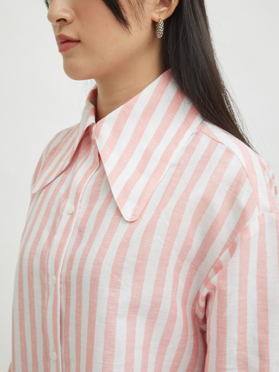 Kemeja wanita lengan panjang ini didesain dengan detail full kancing di bagian depan. Memiliki detail kerah kemeja yang besar sehingga memberikan kesan yang unik. Memiliki siluet bagian bawah yang melengkung. Memiliki bahan yang halus sehingga nyaman saat dipakai. Cocok untuk dikenakan pada acara formal maupun non formal.