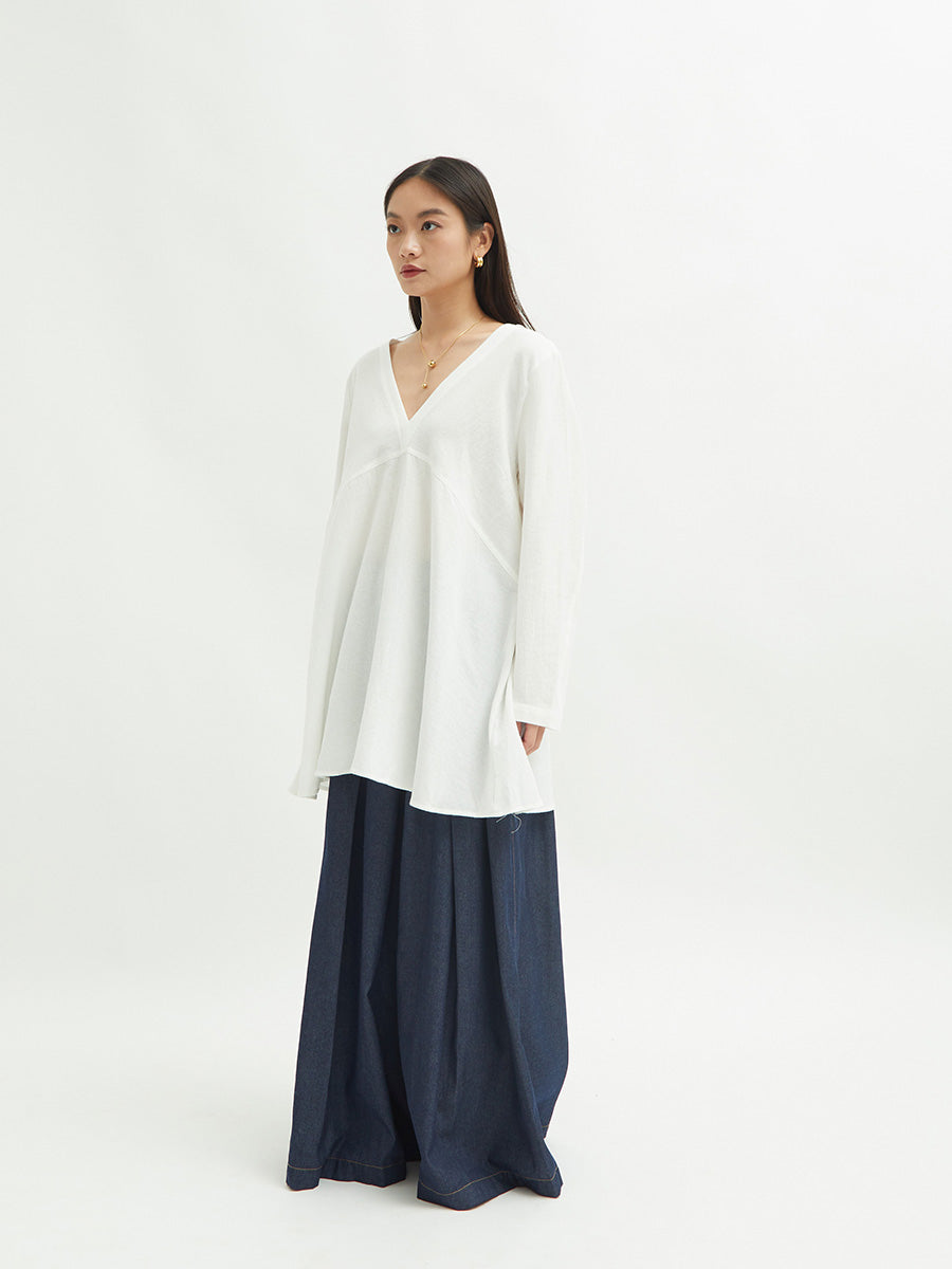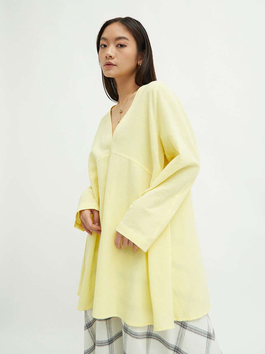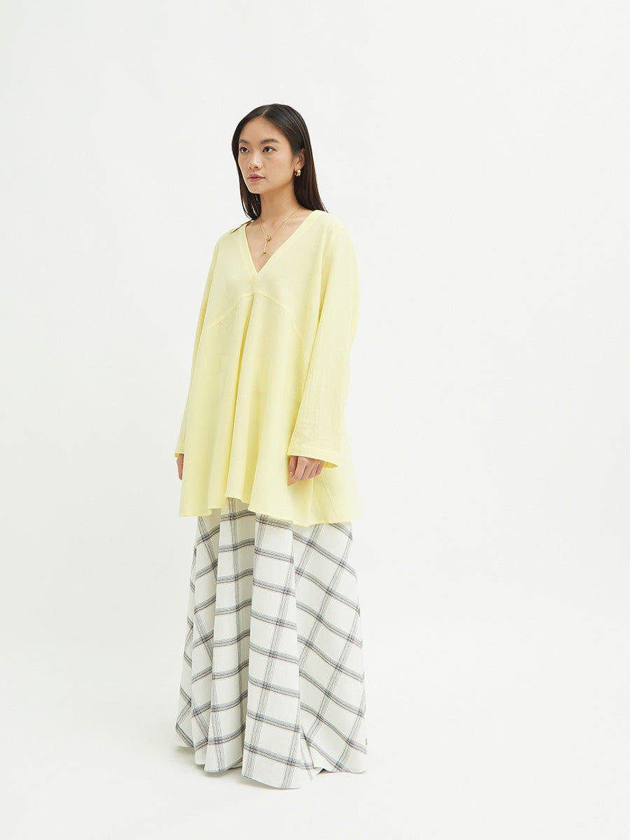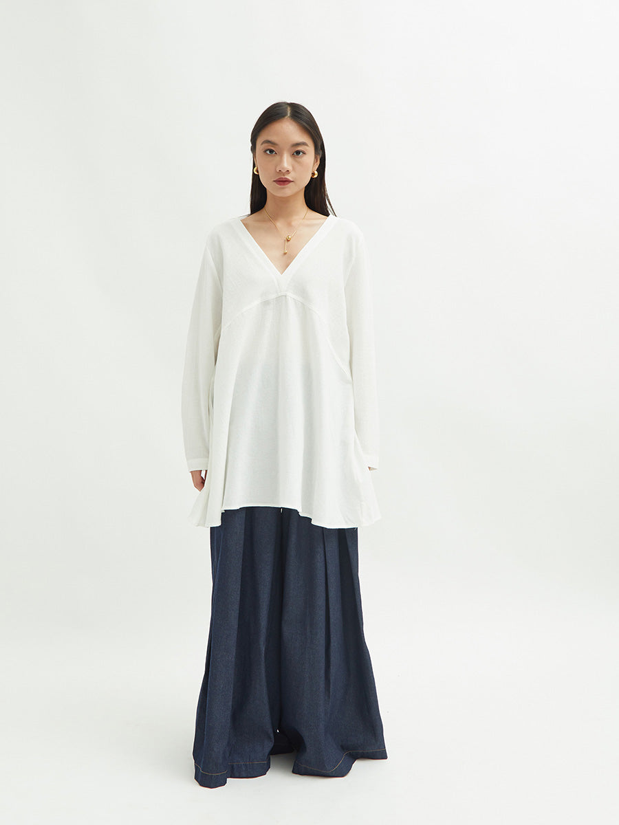 Atasan wanita ini didesain dengan siluet v-neck dan cuttingan oversize. Memiliki bahan yang ringan dan halus, sehingga sangat nyaman saat dikenakan. Dapat dipadukan dengan celana untuk tampilan kasual atau rok untuk tampilan yang lebih feminim.