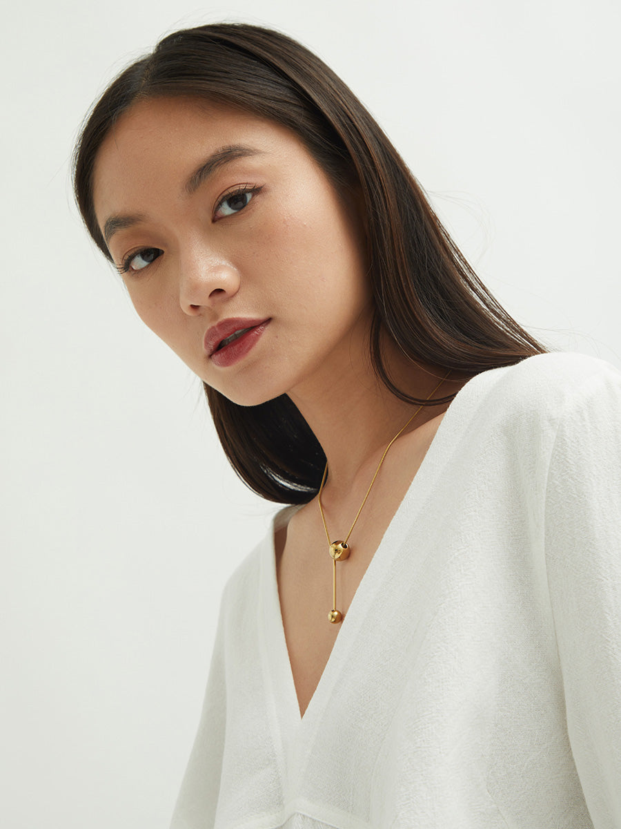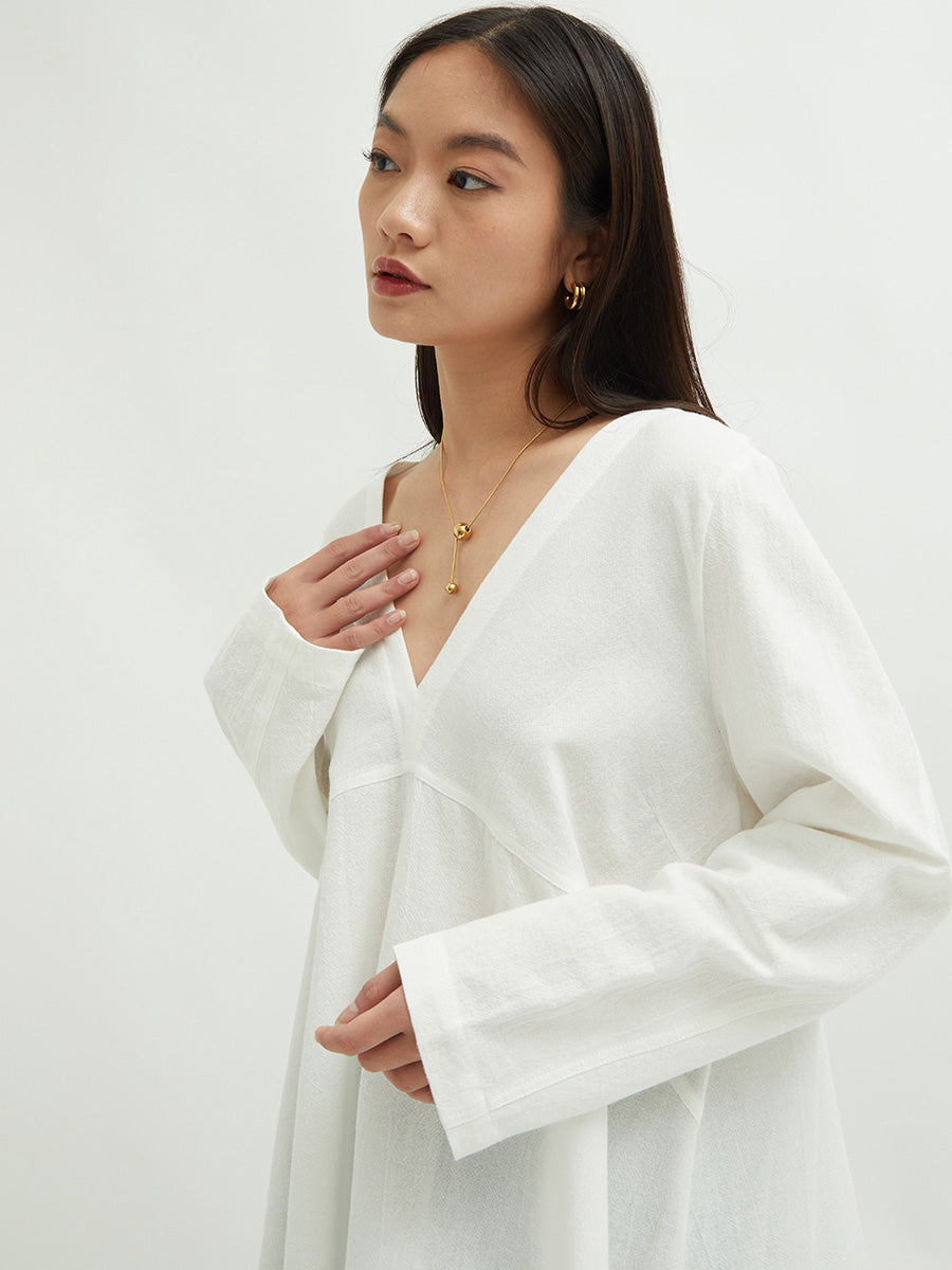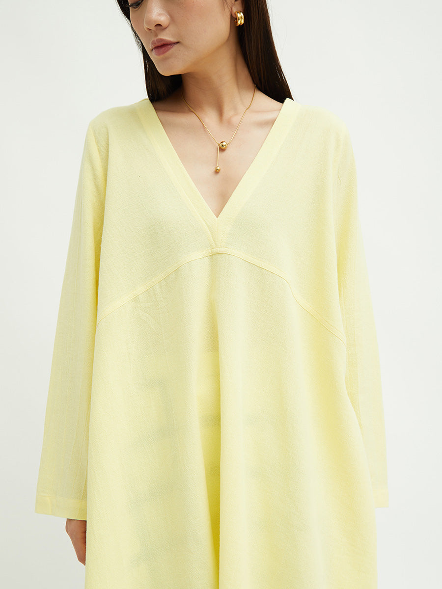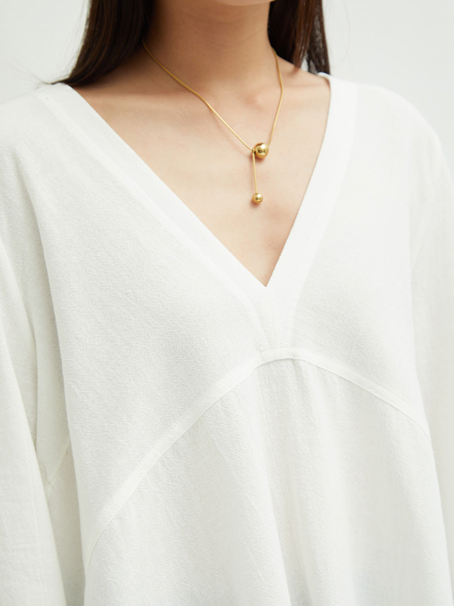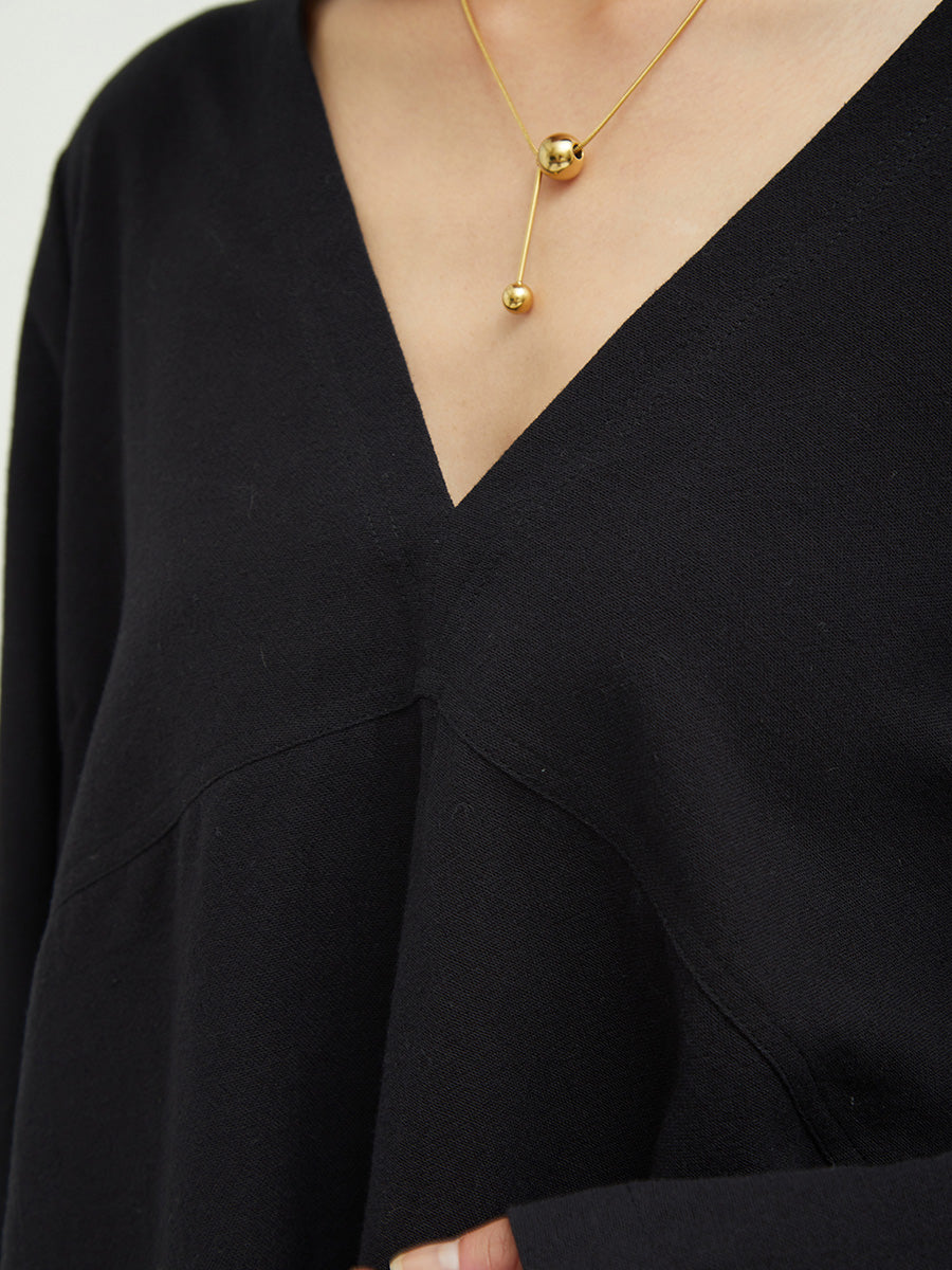 Atasan wanita ini didesain dengan siluet v-neck dan cuttingan oversize. Memiliki bahan yang ringan dan halus, sehingga sangat nyaman saat dikenakan. Dapat dipadukan dengan celana untuk tampilan kasual atau rok untuk tampilan yang lebih feminim.