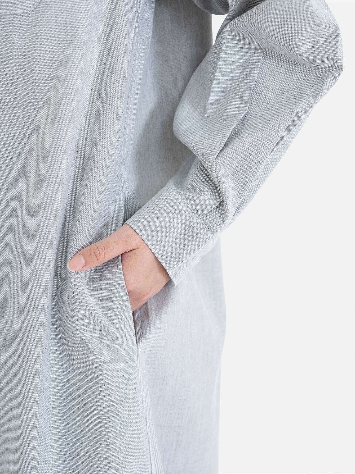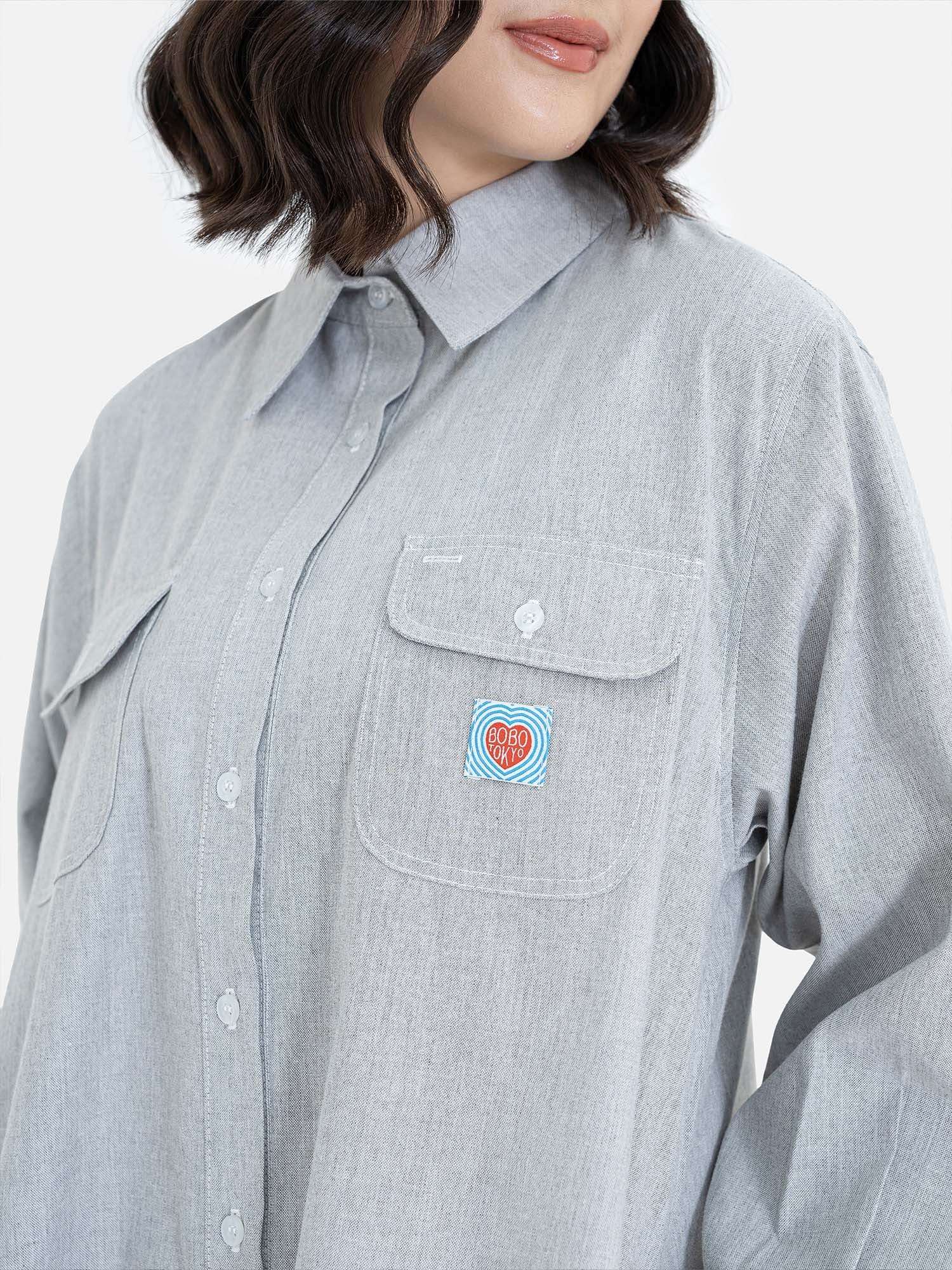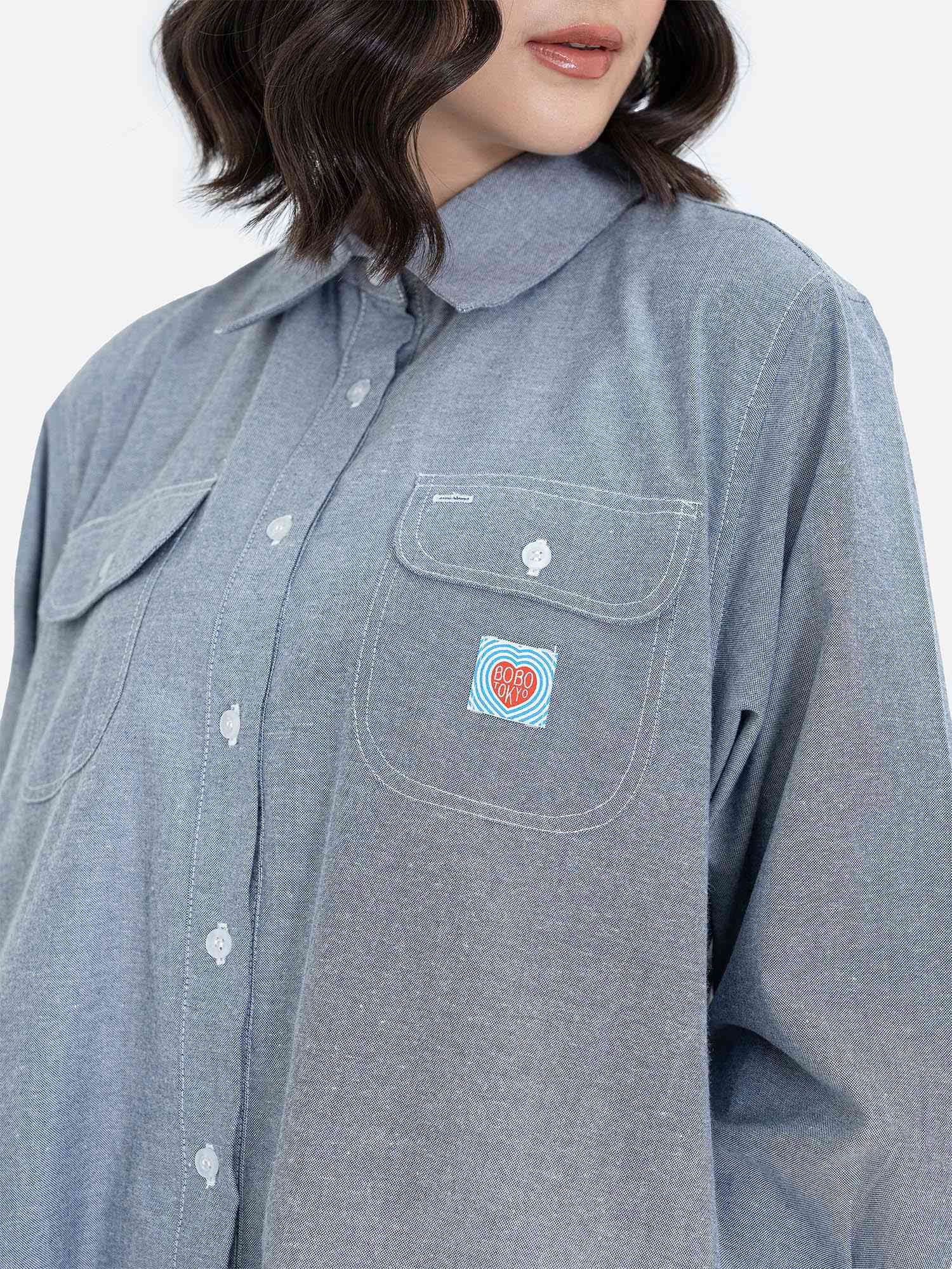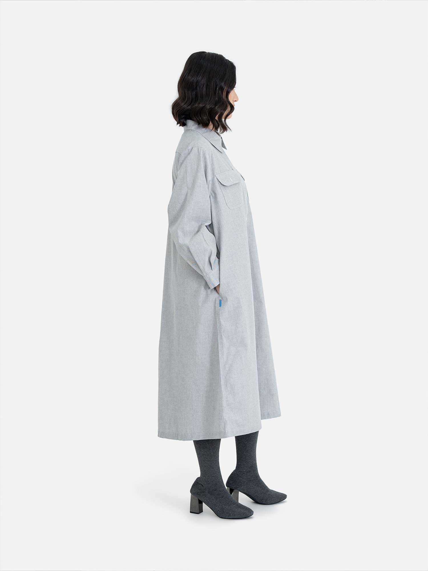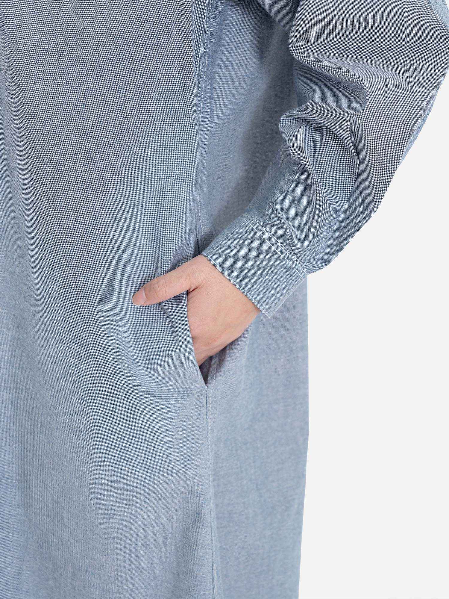 Tampil effortless dengan Imogen Dress! Dress berbahan chambray ini hadir dalam potongan loose-fit yang nyaman dan versatile. Detail kerah klasik, kancing depan penuh, serta dua kantong dada memberi kesan smart casual yang chic. Panjang dress yang mencapai mata kaki dan lengan panjangnya membuatnya cocok dikenakan di berbagai suasana, dari ngantor hingga hangout santai.