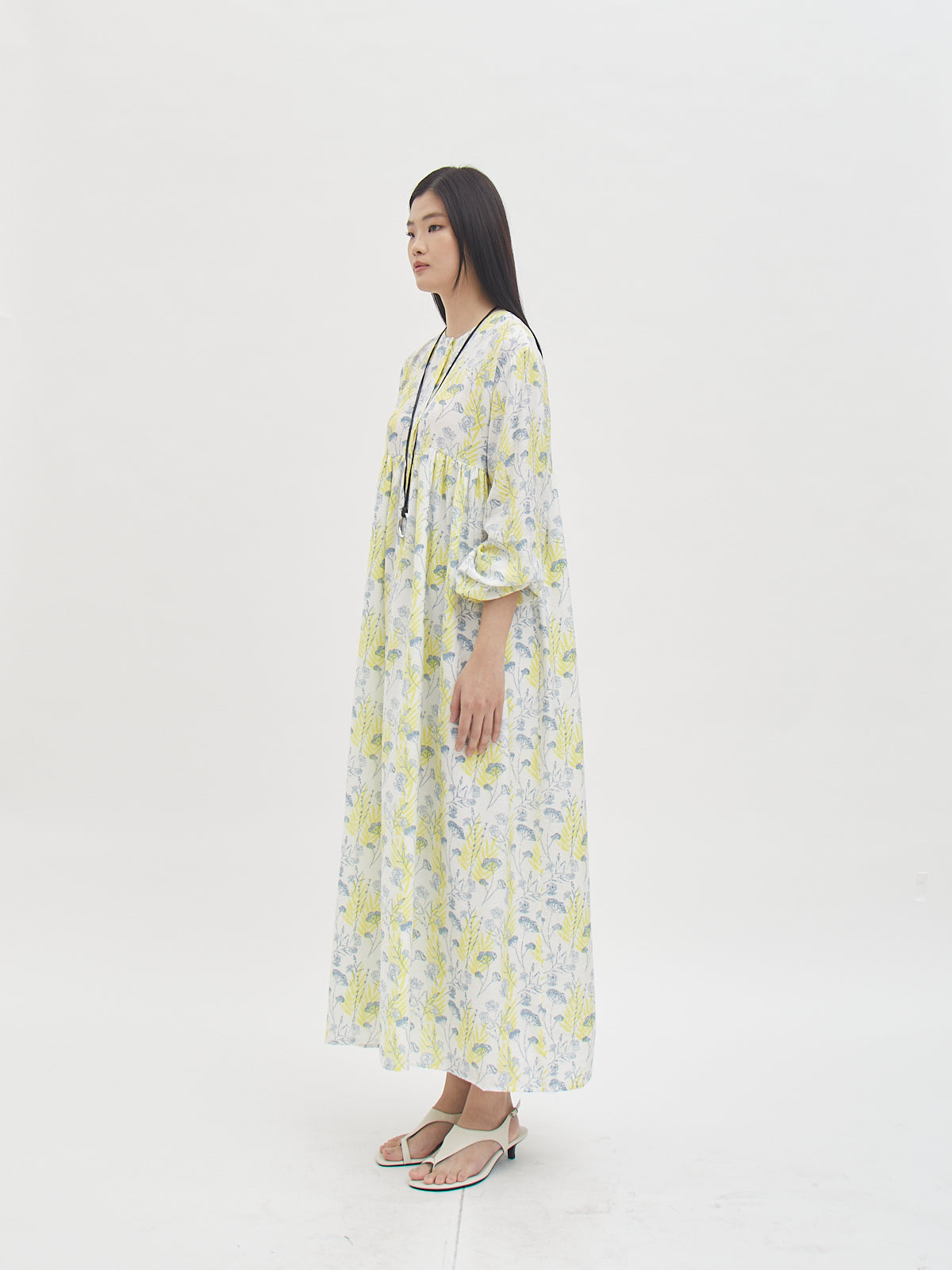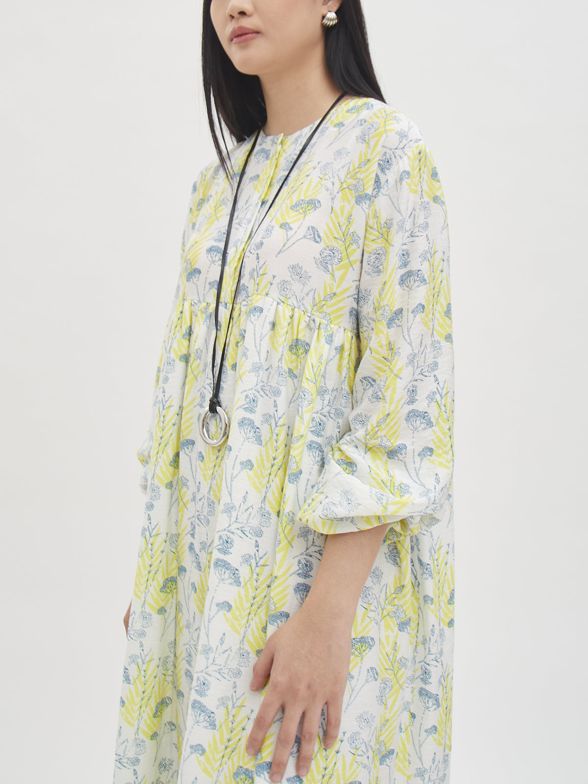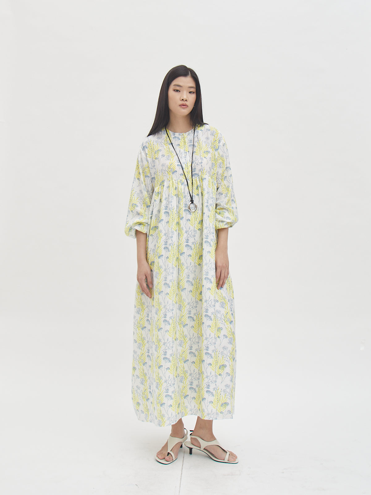 Lengan balon dan motif floral-nya menambah kesan manis dan segar, sementara panjang dress yang maksimal membuatnya tetap sopan dan stylish.
