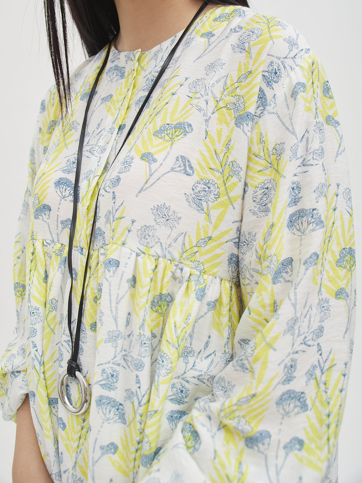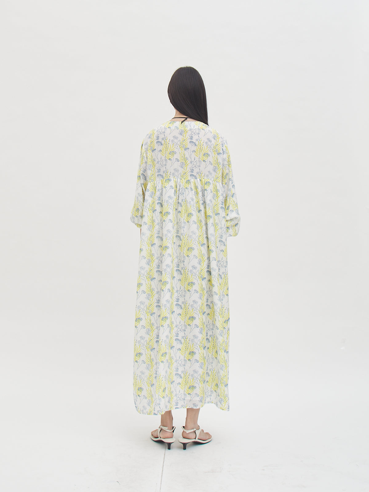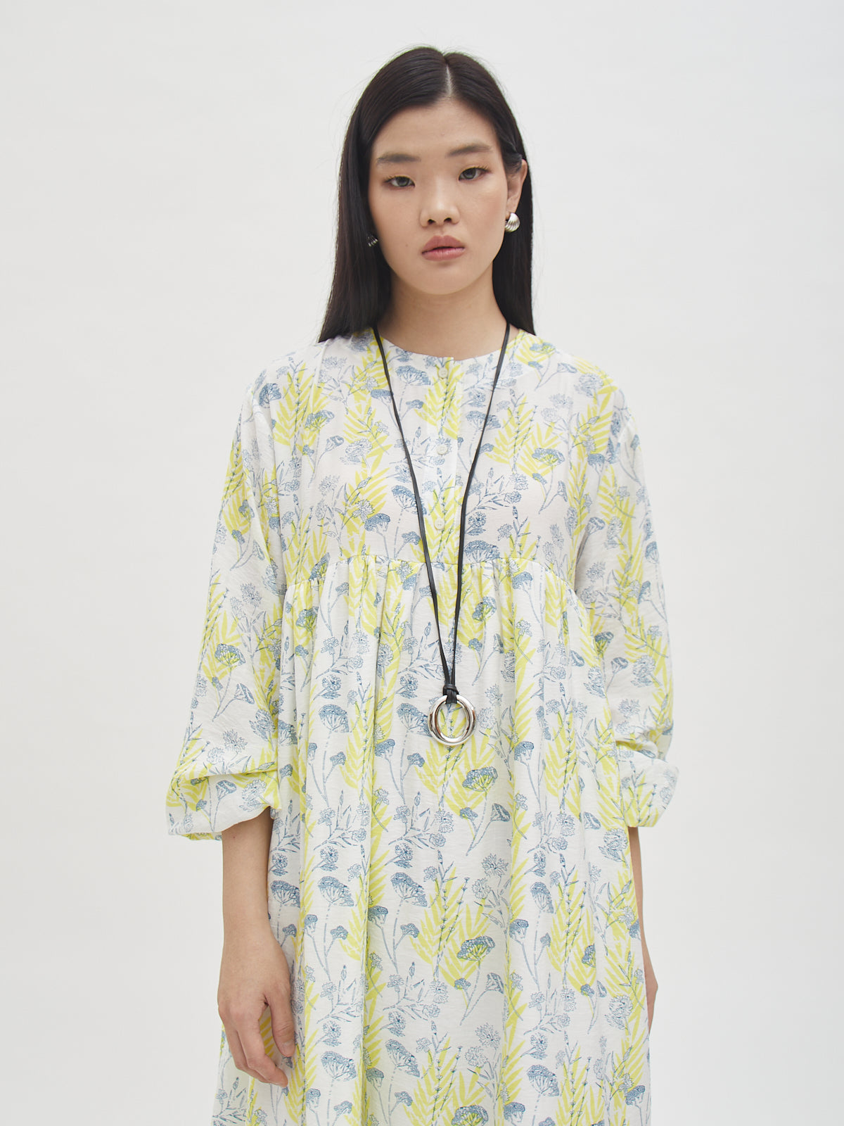 Lengan balon dan motif floral-nya menambah kesan manis dan segar, sementara panjang dress yang maksimal membuatnya tetap sopan dan stylish.