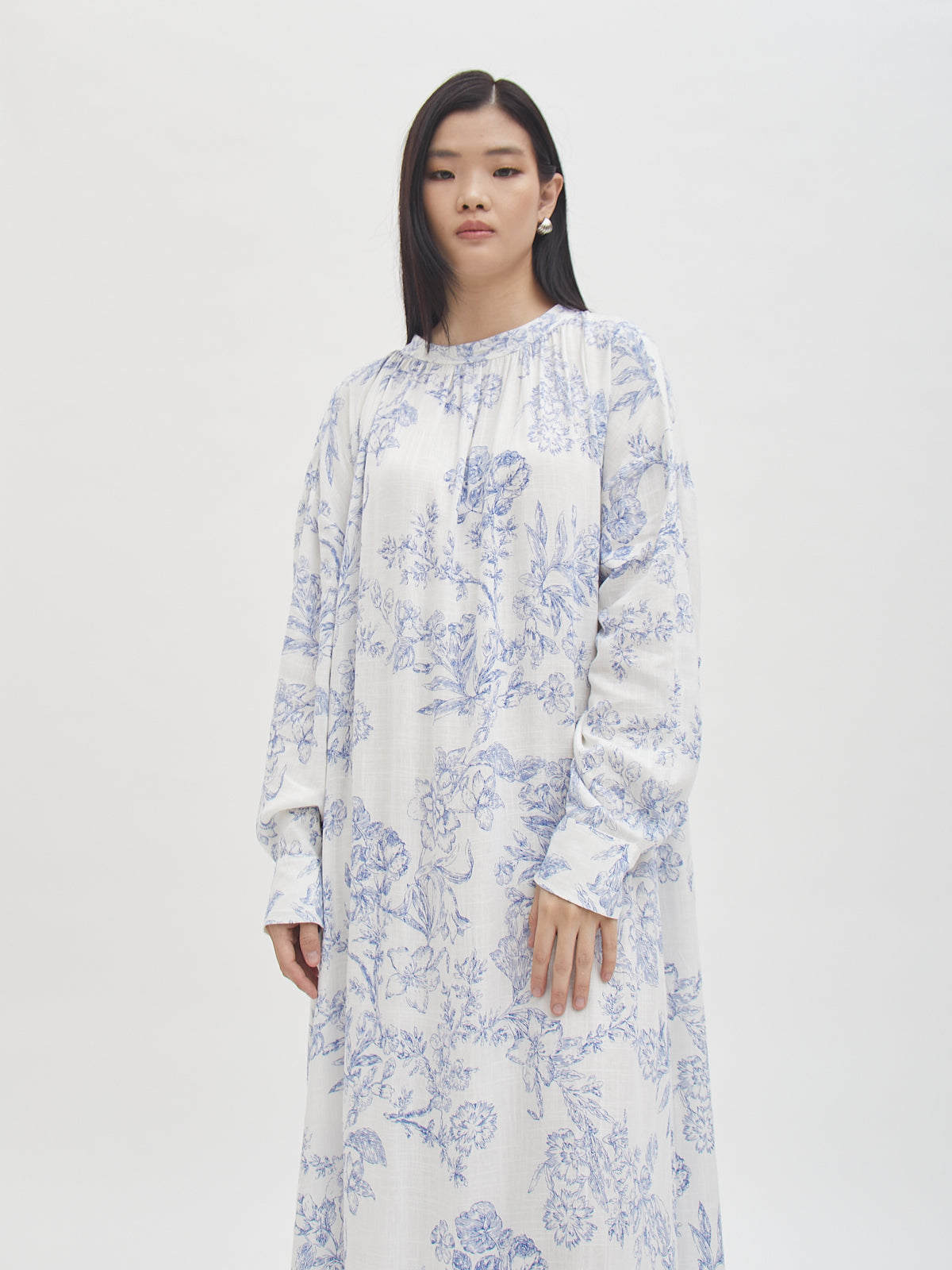 Seruni Dress menghadirkan siluet longgar yang anggun dengan sentuhan motif yang menenangkan. Desainnya yang effortless cocok untuk tampil elegan tanpa usaha berlebih. Potongannya lurus dengan detail kerah halus dan pleats di bagian dada, memberikan kesan manis namun tetap sophisticated.
