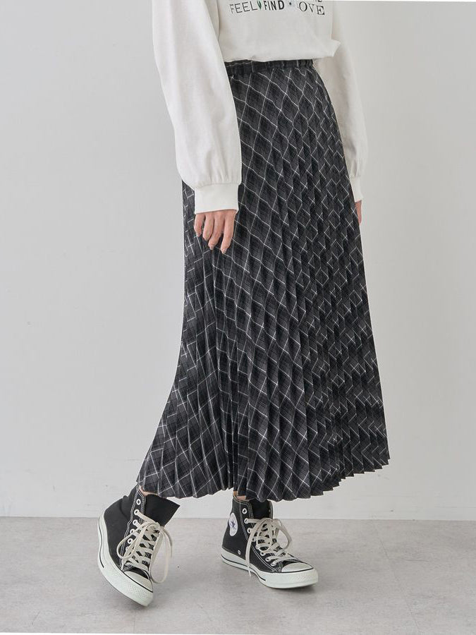 Tampil elegan dan klasik dengan rok plisket motif kotak yang memberikan siluet flowy dan anggun saat bergerak. Desainnya melebar secara moderat di bagian hem, menciptakan tampilan feminin yang timeless. Terbuat dari bahan yang ringan dan nyaman, rok ini cocok untuk tampilan kasual hingga semi-formal. Dilengkapi dengan pinggang elastis, memberikan fleksibilitas dan kenyamanan maksimal.