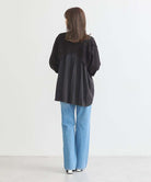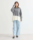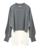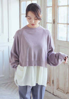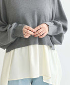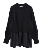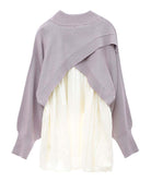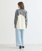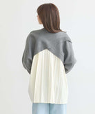 Sweater ini menghadirkan desain modern dengan kombinasi material knit di bagian depan dan aksen pleats di bagian belakang, memberikan tampilan yang stylish dan unik. Siluet oversized dengan potongan asimetris menambah kesan kasual sekaligus elegan, cocok dipadukan dengan berbagai gaya, dari santai hingga semi-formal.