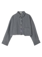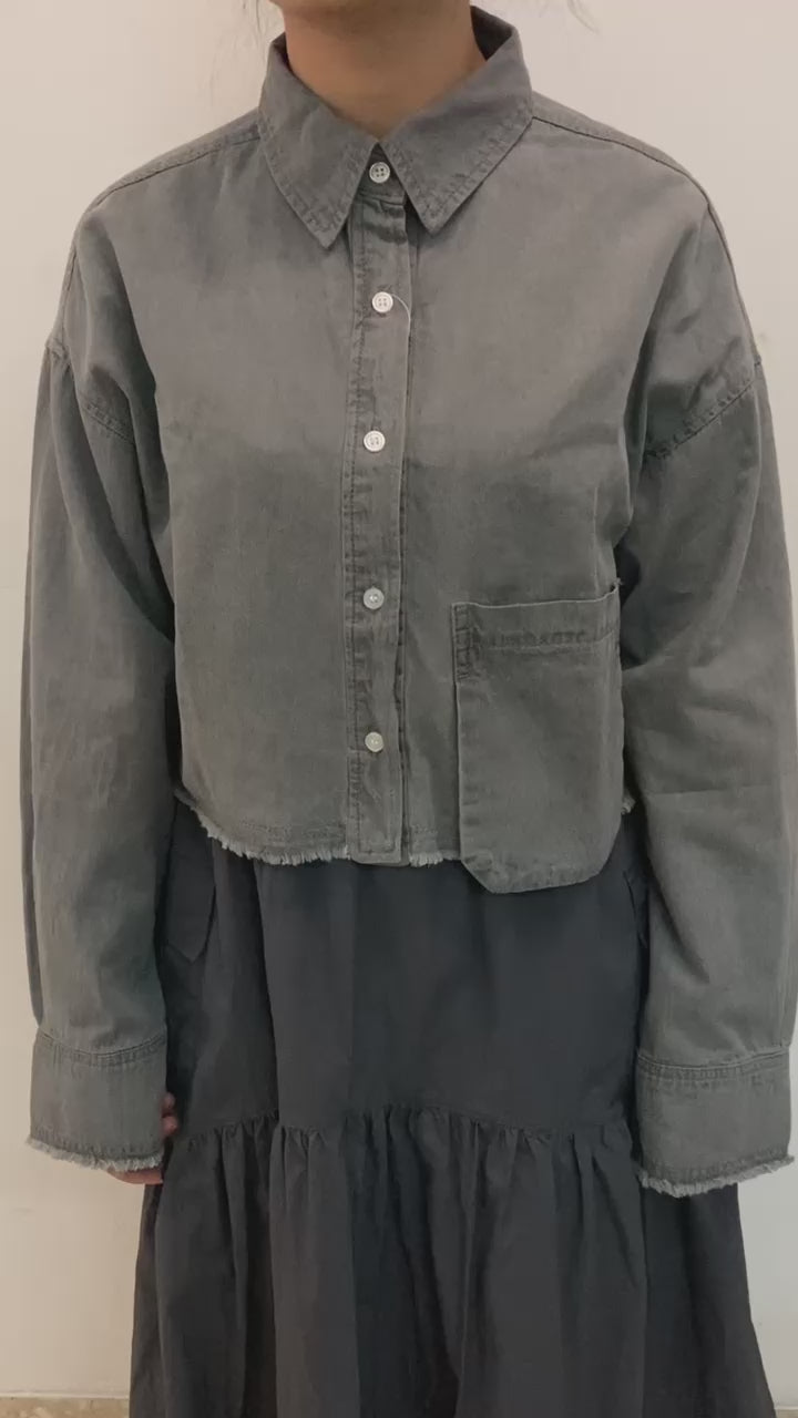 Kemeja wanita ini didesain dengan kerah kemeja. Cuttingan crop yang unfinished memberikan kesan elegan. Memiliki detail full kancing. Terdapat satu saku fungsional di sisi kiri depan. Bahannya yang ringan dan halus sehingga nyaman saat dipakai. Cocok digunakan sebagai luaran ataupun sebagai kemeja biasa.
