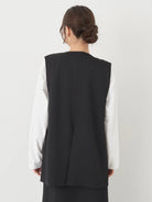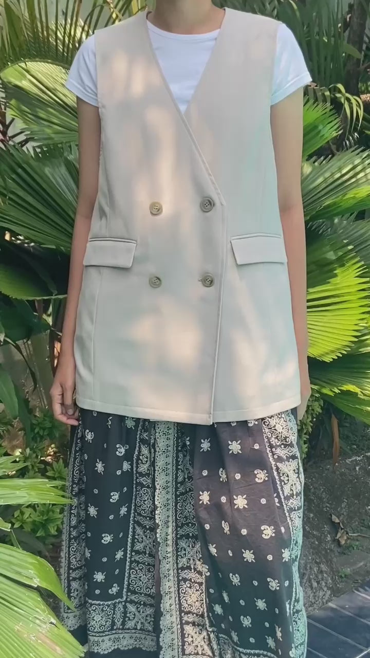 Vest oversize wanita ini didesain dengan leher V-neck. Terdapat dua kancing depan dan dua kancing dalam. Terdapat slit di bagian belakang sehingga memberikan kesan elegan. Memiliki bahan yang halus sehingga nyaman saat dipakai. Cocok untuk dikenakan pada acara formal maupun non formal.