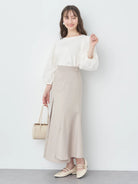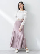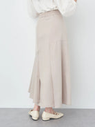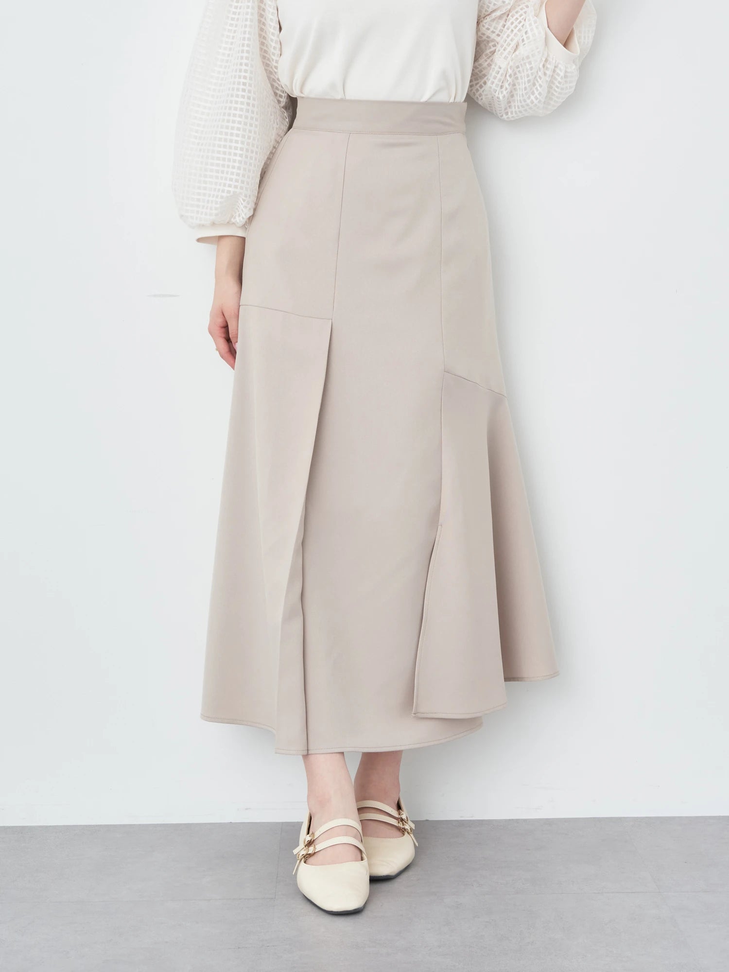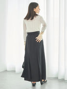 Rok wanita ini didesain dengan asimetris dan memiliki ruffle sehingga memberikan kesan yang elegan. Terdapat kain pada lapisan dalam sehingga tidak tembus pandang. Memiliki detail resleting pada bagian samping, serta karet elastis pada bagian belakang. Cocok dipakai untuk tampilan kasual dan formal.