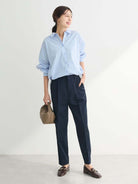 Kemeja bergaya kasual dengan bahan easy-care yang tidak mudah kusut dan menyusut. Potongan longgar dengan siluet lebar membuatnya nyaman dipakai sebagai outer ringan atau kemeja harian. Dilengkapi detail drawstring di bagian bawah agar bisa disesuaikan sesuai gaya, serta pilihan warna solid dan motif garis yang mudah dipadukan.