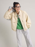 Jaket ini menghadirkan gaya kasual yang tetap modern dengan sentuhan sleek dan versatile. Didesain dengan front zipper dan kerah klasik, membuatnya mudah dipakai dan dilepas. Teksturnya lembut dan nyaman, dengan potongan relaxed fit serta kantong besar di bagian depan untuk tampilan yang fungsional dan stylish.