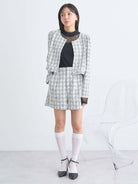 Tampil elegan dengan sentuhan klasik melalui Tweed Cropped Jacket. Desainnya yang feminin dengan detail kancing mutiara memberikan tampilan mewah dan anggun. Potongan jaket yang terstruktur membuatnya mudah dipadukan untuk gaya formal maupun kasual. Cocok dikenakan bersama rok tweed senada untuk tampilan yang serasi dan chic.