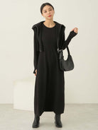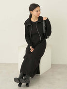 Set dua potong dengan desain layer vest dan dress yang memberikan tampilan elegan dan modern. Dress dibuat dari bahan rajut lembut dengan potongan lurus yang membentuk siluet I-line, sementara vest dilengkapi resleting depan yang dapat dibuka dari dua arah untuk menyesuaikan gaya. Kedua item bisa dikenakan secara terpisah, memberikan banyak pilihan styling dalam satu set.
