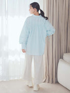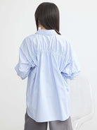 Kemeja dengan potongan longgar dan detail serut di bagian belakang yang menambah volume serta sentuhan feminin. Dilengkapi dengan kantong dada dan tali di ujung lengan yang bisa diikat untuk tampilan lebih rapi. Terbuat dari bahan ringan dan nyaman dipakai sepanjang hari, cocok untuk tampilan kasual hingga semi-formal.