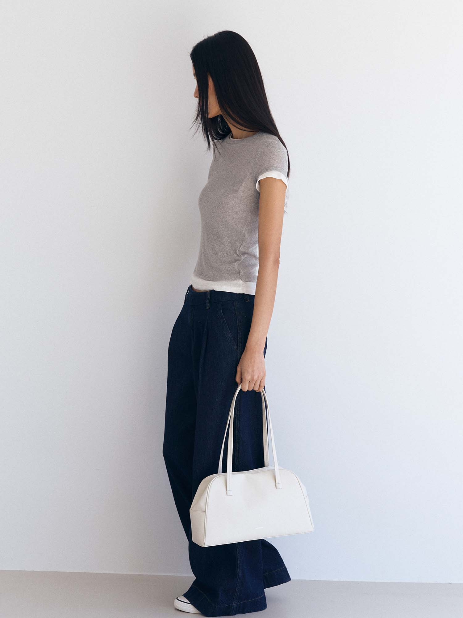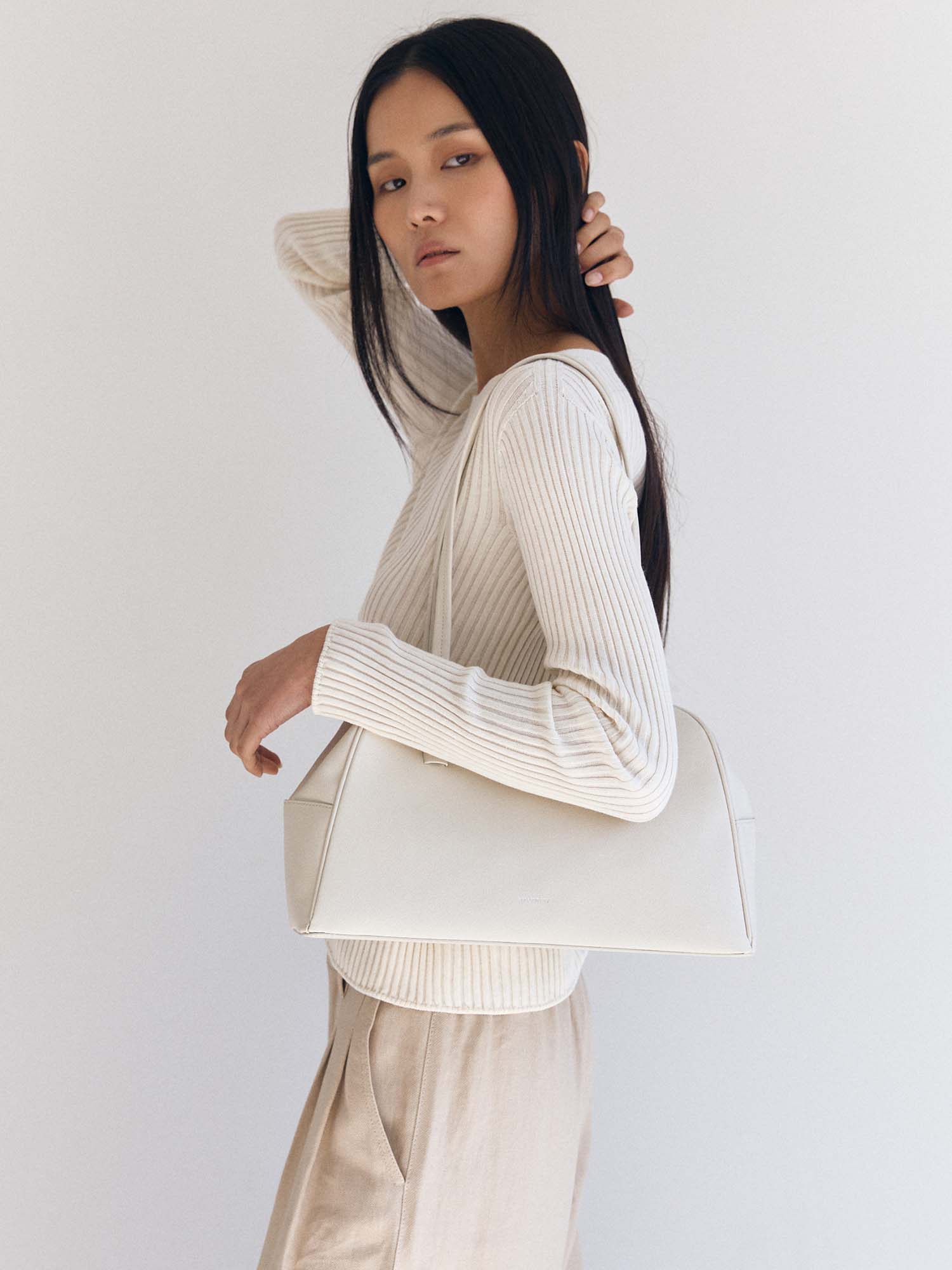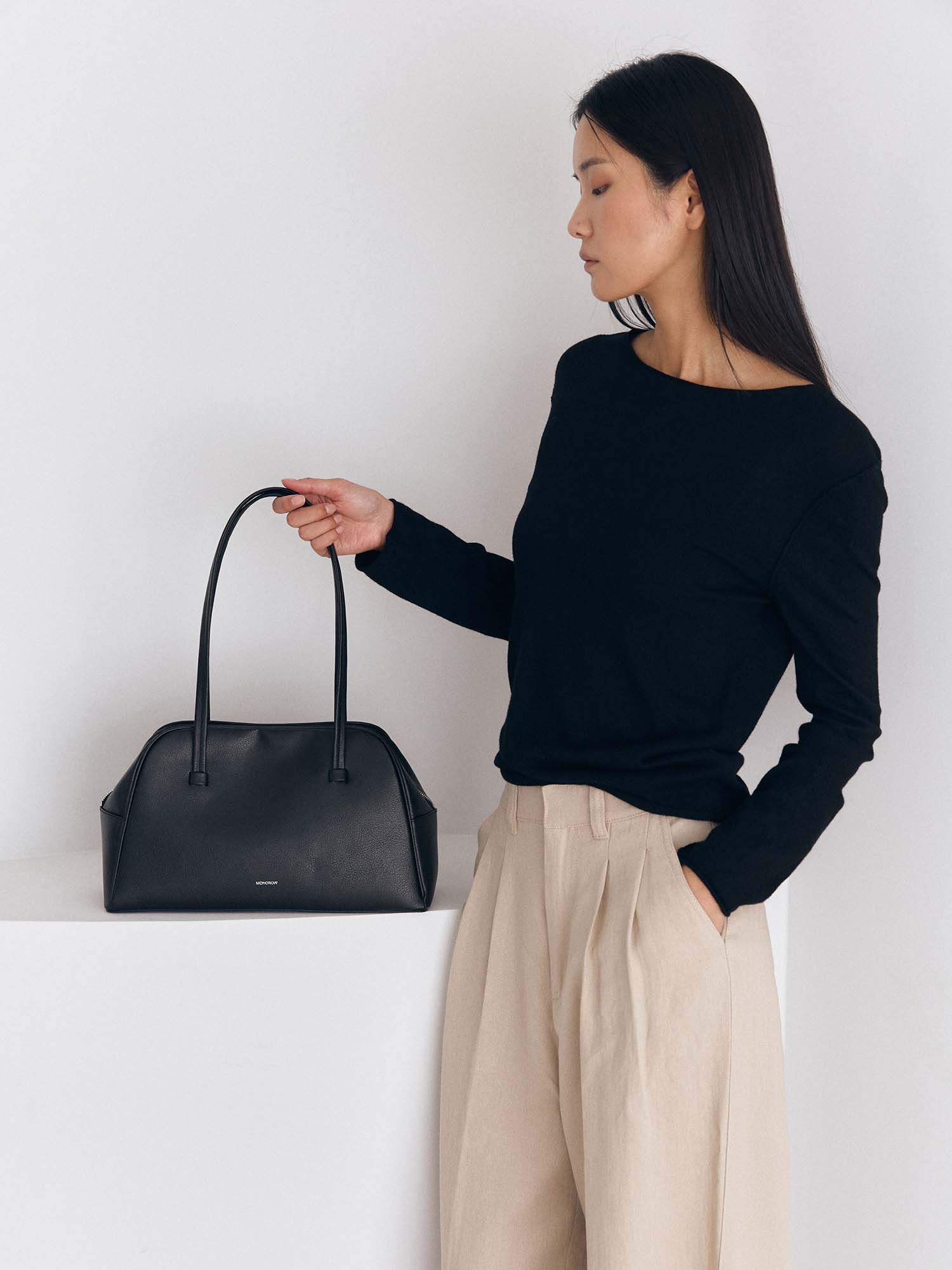 Crafted with clean lines and a sleek silhouette, this shoulder bag offers just the right balance of function and form. Featuring a wide, structured base, it's designed to keep its shape while offering generous space for your essentials. Whether styled on your shoulder or in hand, its double handles provide comfort and stability throughout the day.