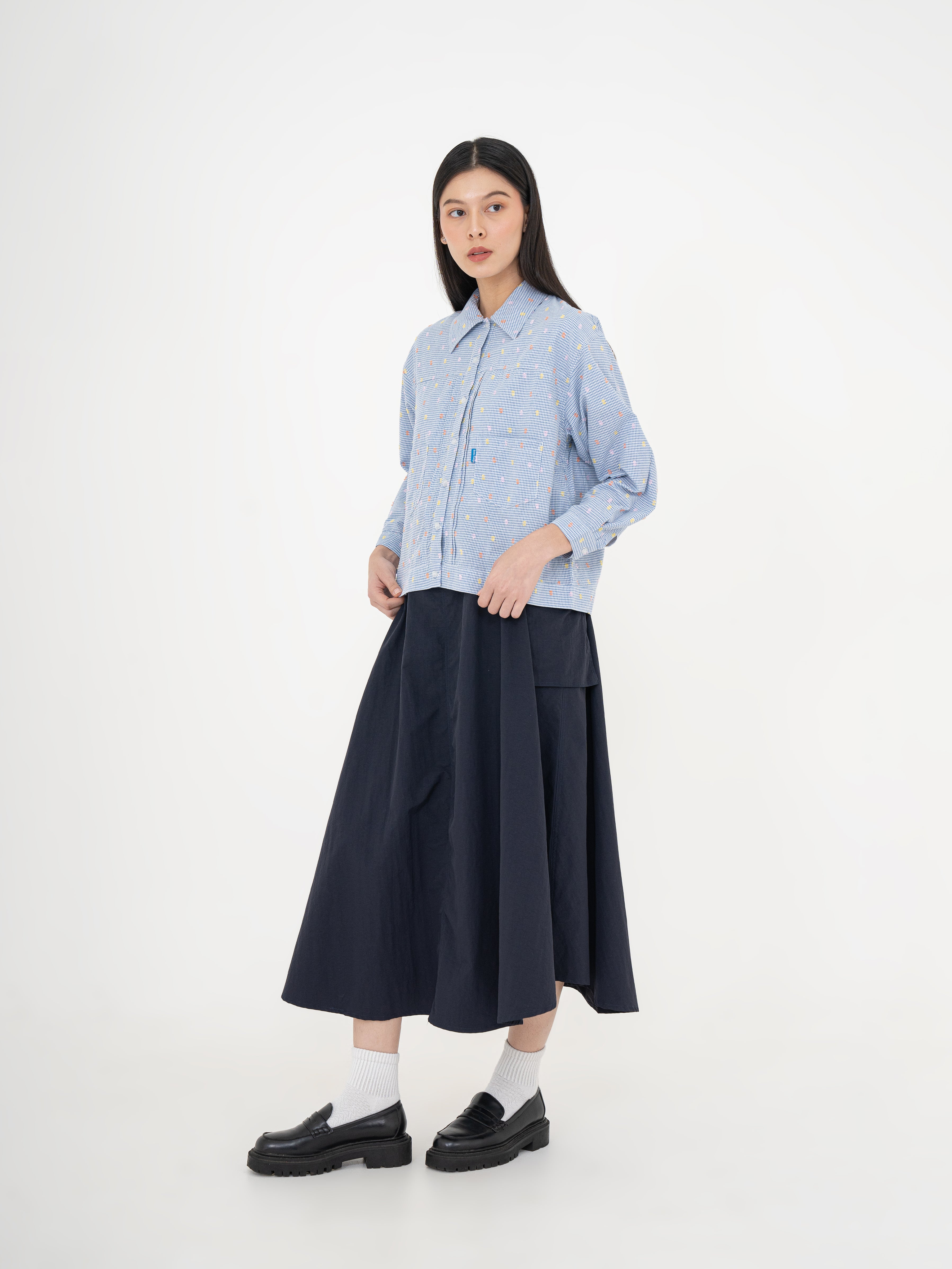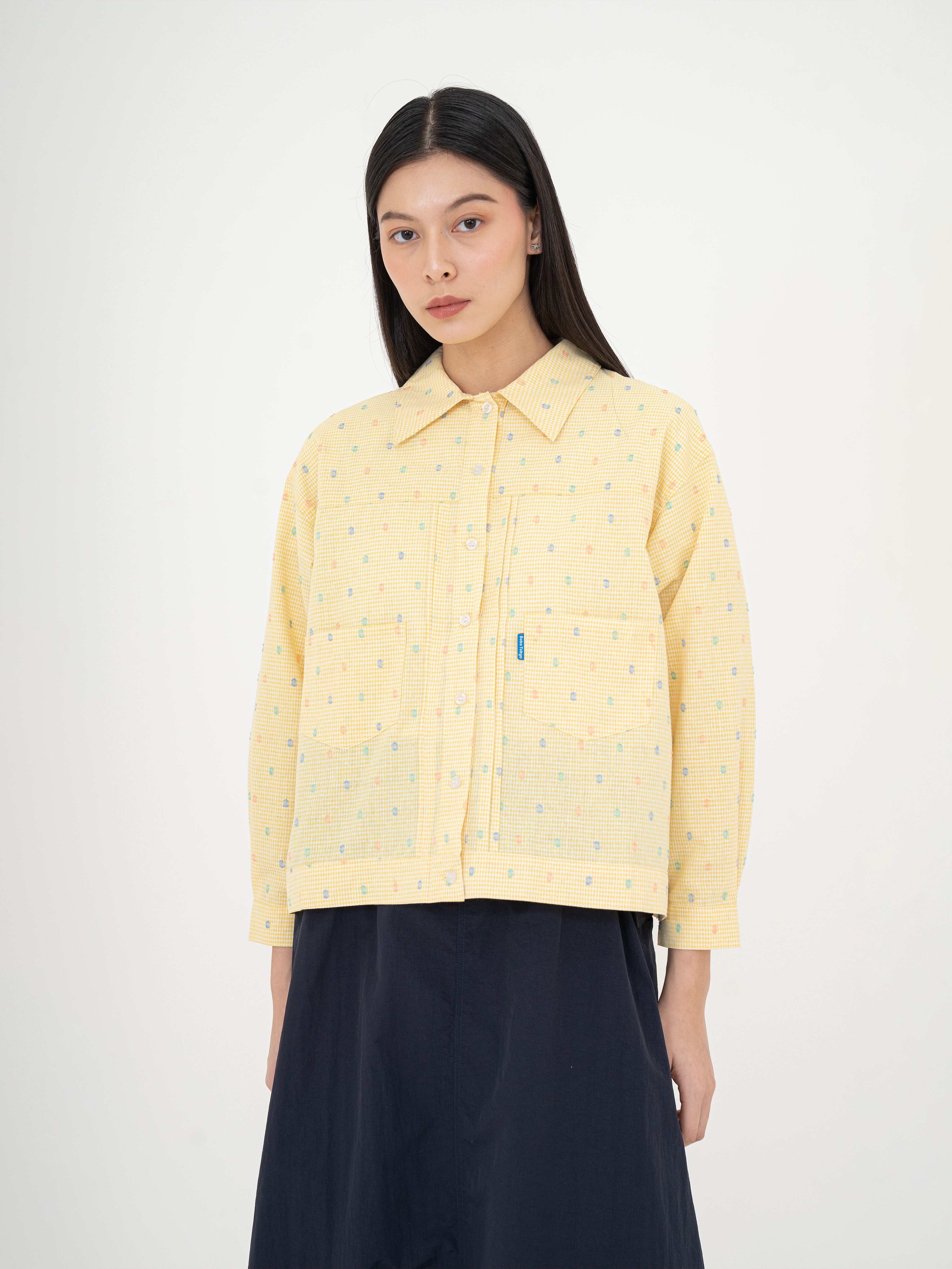 Marina Shirt Jacket adalah perpaduan sempurna antara kemeja kasual dan jaket ringan yang playful. Didesain dengan bahan ringan bermotif lembut serta potongan boxy yang nyaman, outer ini cocok digunakan sebagai lapisan tambahan di cuaca sejuk atau sebagai statement piece untuk gaya santai yang manis.