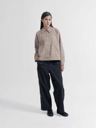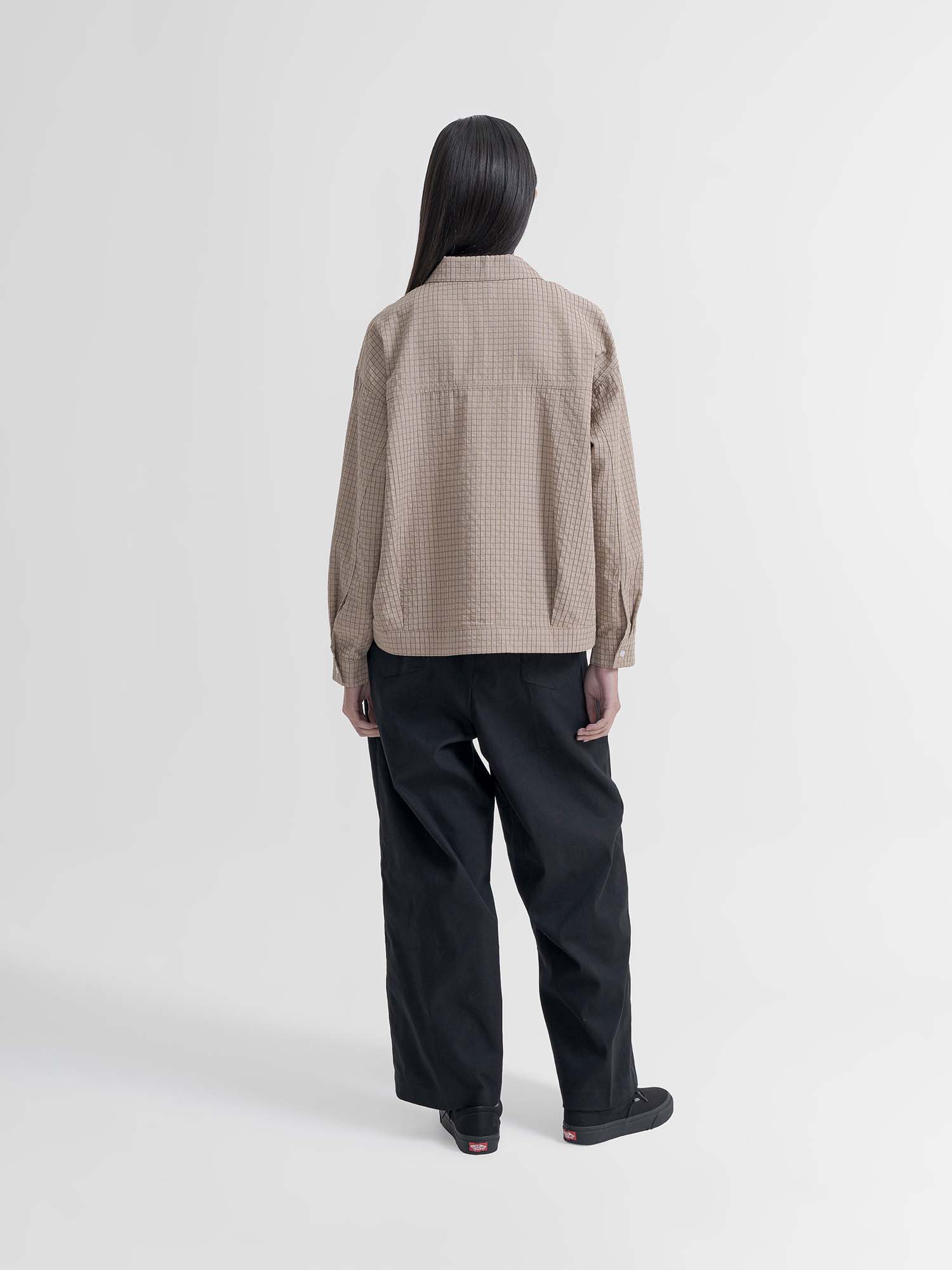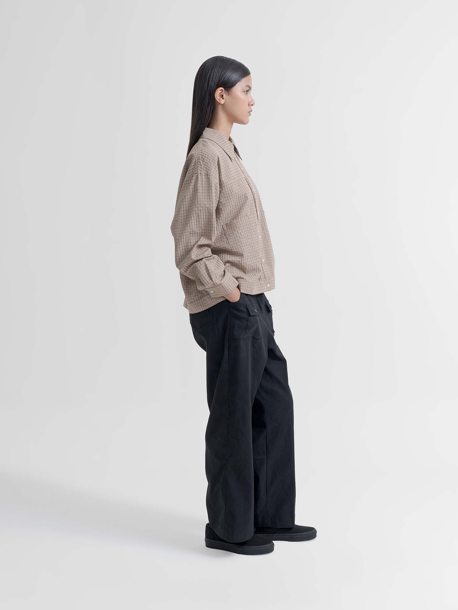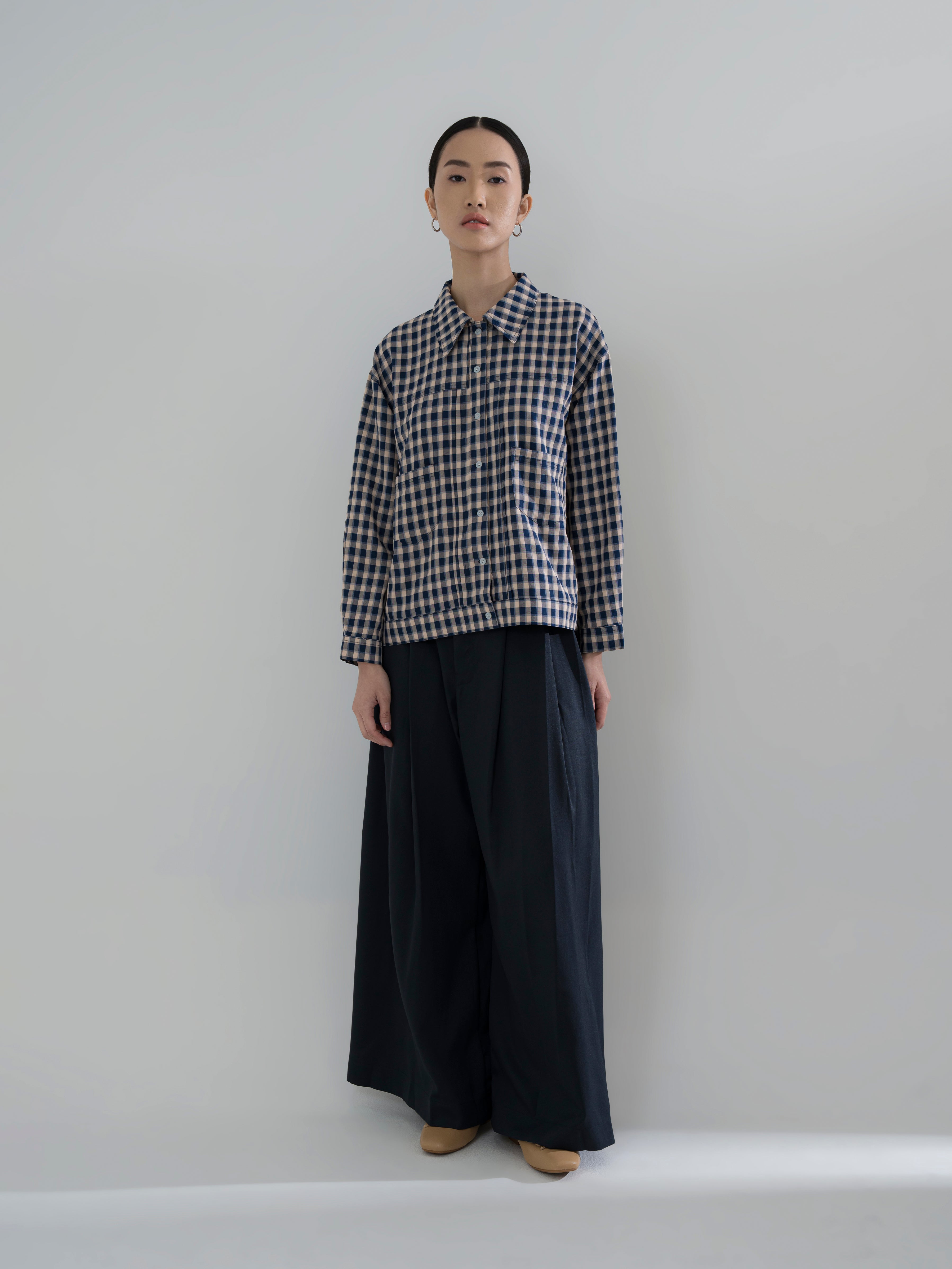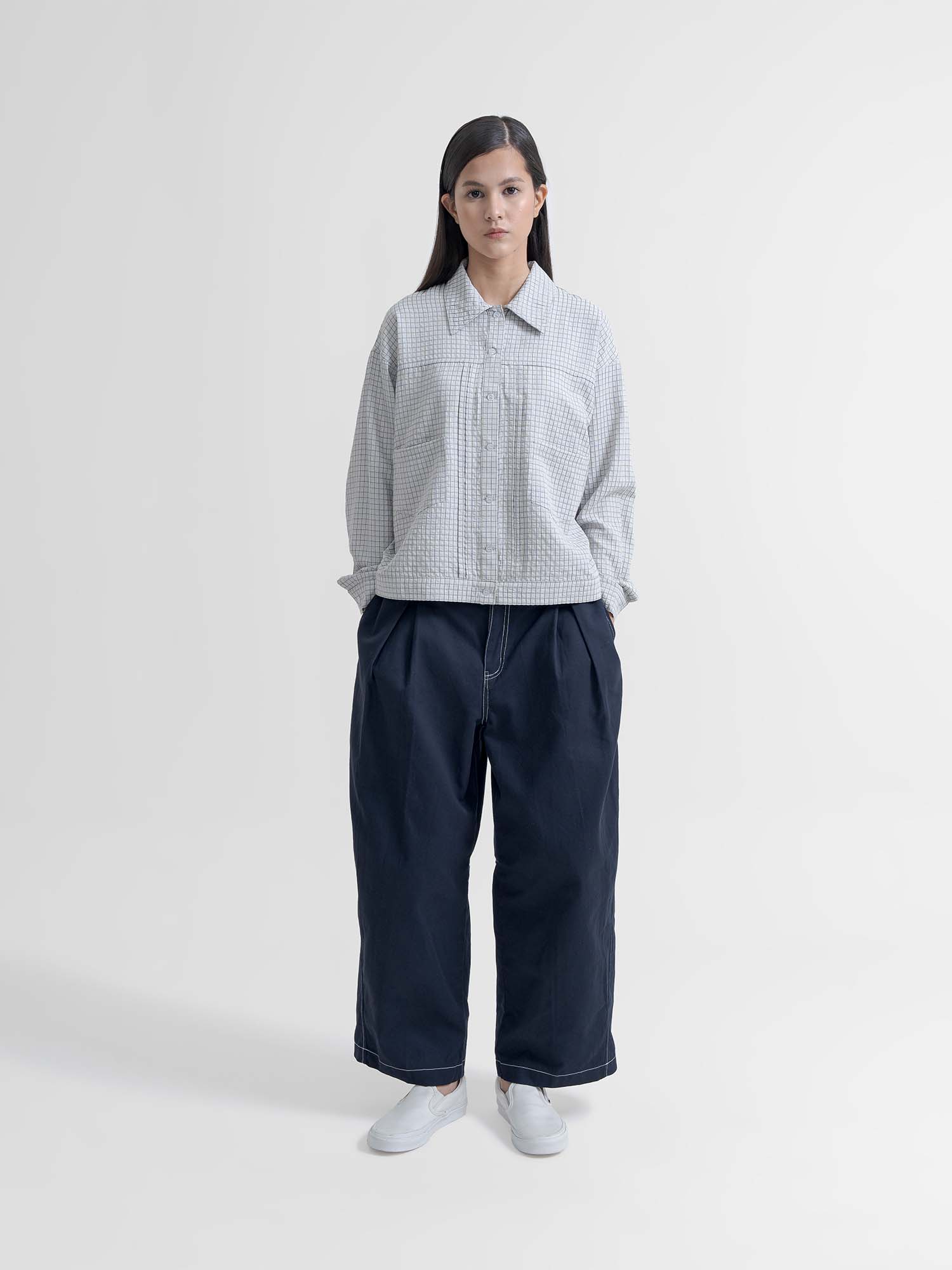 Dilengkapi dengan dua kantong depan fungsional dan kancing tersembunyi, tampilannya clean namun tetap praktis untuk keseharian.