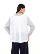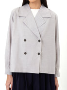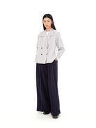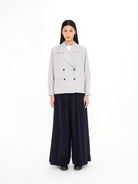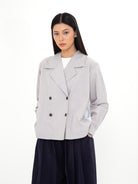 Detail double-breasted button menambah karakter klasik yang timeless, sementara sentuhan bordir eksklusif di bagian belakang menghadirkan aksen feminin yang subtle dan refined. Hadir dalam dua pilihan warna elegan: Navy dengan Gray, Anna Outer menjadi pilihan sempurna untuk melengkapi tampilan Hari Raya dengan nuansa modesty yang elevated.