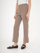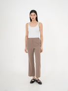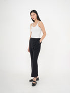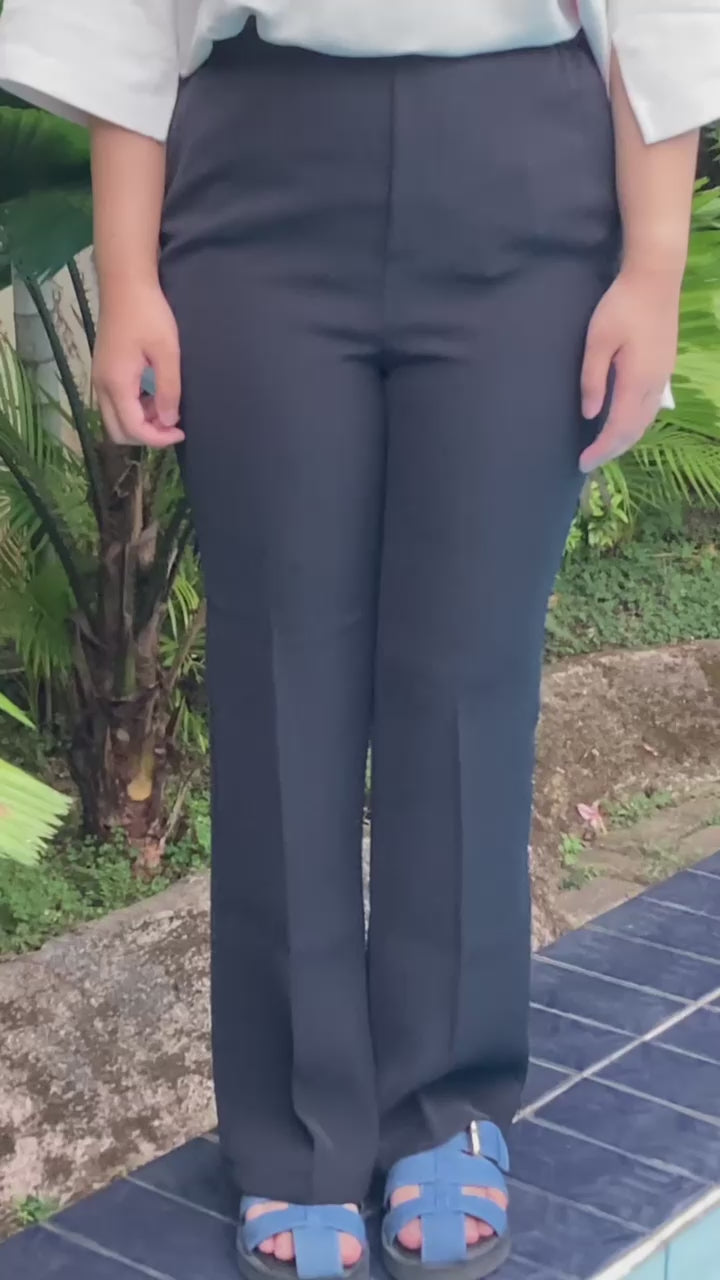 Terbuat dari bahan halus dengah tekstur mengkilat yang memberikan kesan mewah. Memiliki karet di bagian belakang. Terdapat saku di bagian samping celana. Dapat dipadukan dengan atasan casual maupun resmi.