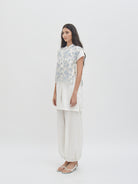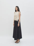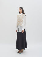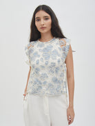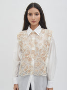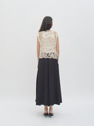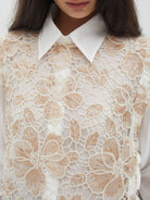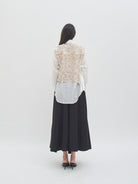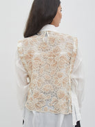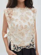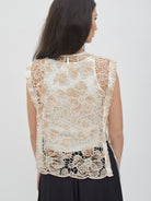 Vest tanpa lengan dengan detail lace yang memberikan tampilan feminin dan elegan. Potongannya ringan dan nyaman dipakai, cocok untuk layering di atas inner atau atasan polos. Desainnya memberi sentuhan manis tanpa terlihat berlebihan, pas untuk gaya kasual hingga semi-formal.