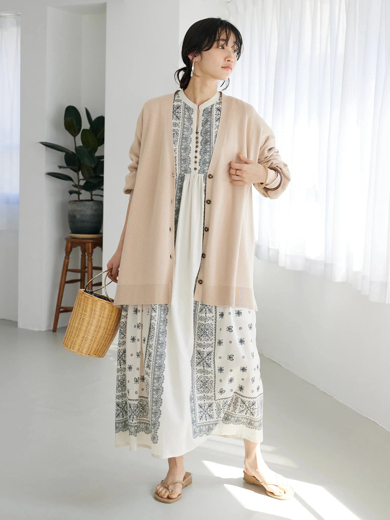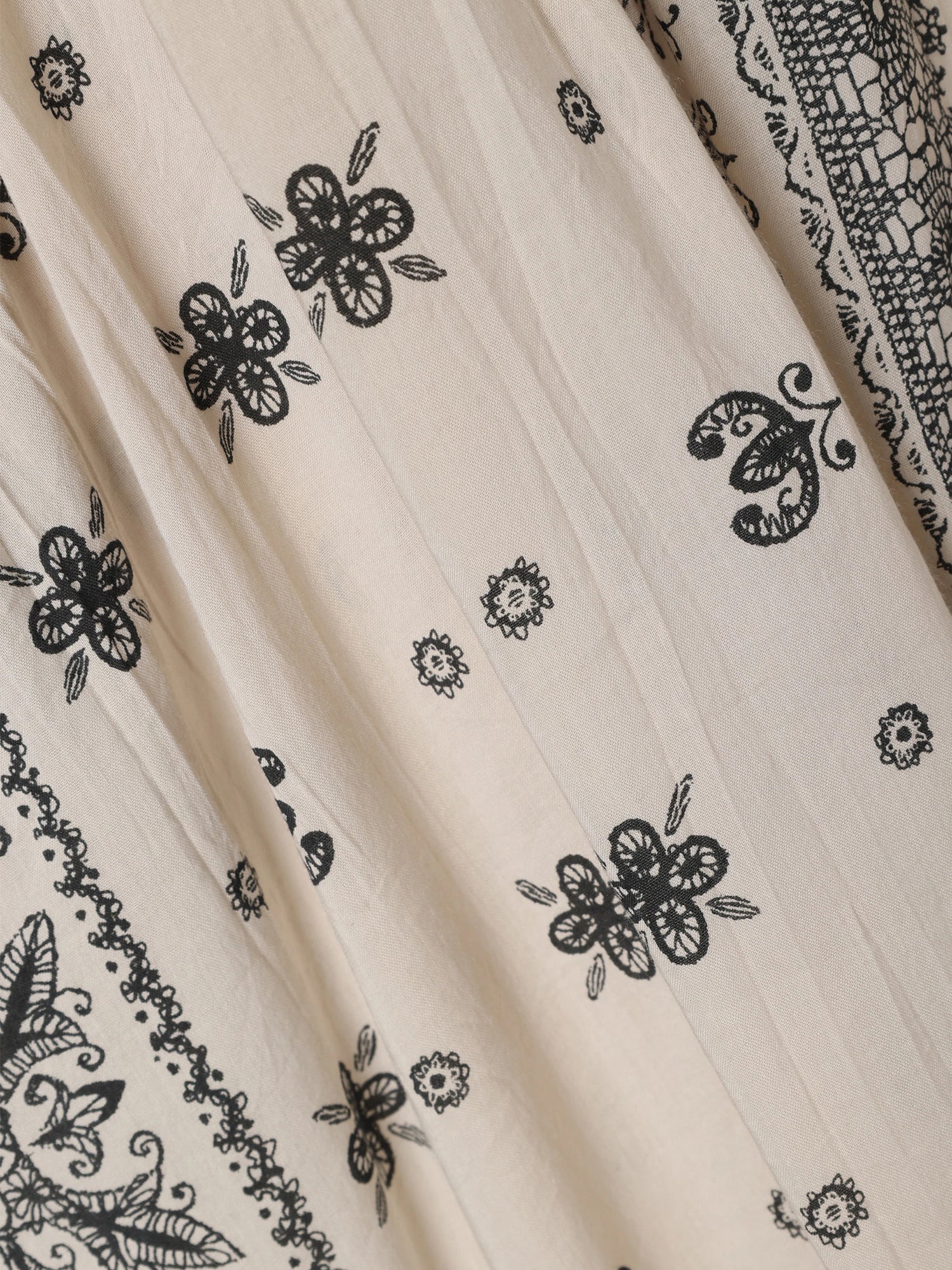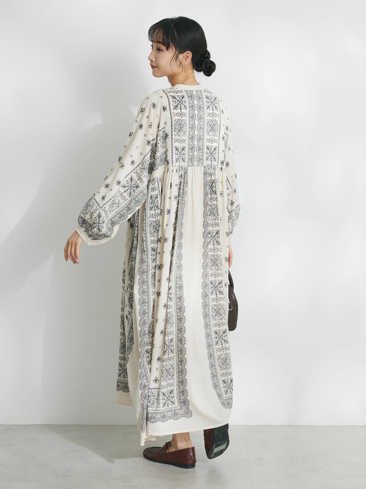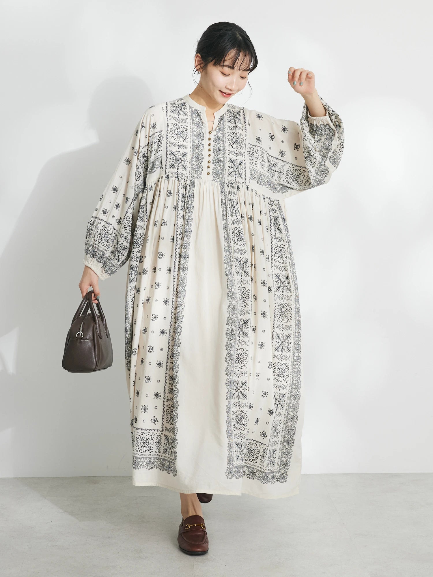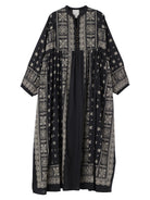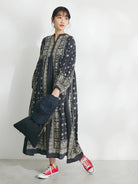 Dress panjang dengan motif statement yang memberikan kesan elegan namun tetap effortless. Siluet loose dengan detail panel motif di bagian depan menciptakan tampilan yang unik dan standout. Material cotton-rayon yang lembut dan ringan membuatnya nyaman dipakai bahkan saat cuaca panas. Bisa dipadukan dengan sneakers untuk look kasual, atau dikenakan sendiri untuk tampilan yang lebih clean dan chic.