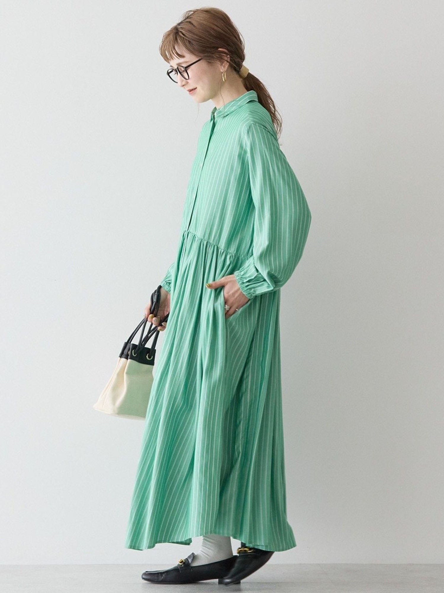 Shirt dress berbahan rayon yang terasa sejuk dan lembut di kulit, nyaman dipakai sepanjang hari. Detail collar kecil yang rapi memberi kesan clean dan refined, sementara potongan flare dengan gathering di bagian pinggang menciptakan siluet feminin yang flowy. Kancing depan full button membuatnya fleksibel untuk dipakai sebagai dress atau sebagai outer layering. Pilihan warna dan stripe yang beragam memberi karakter berbeda di setiap look.