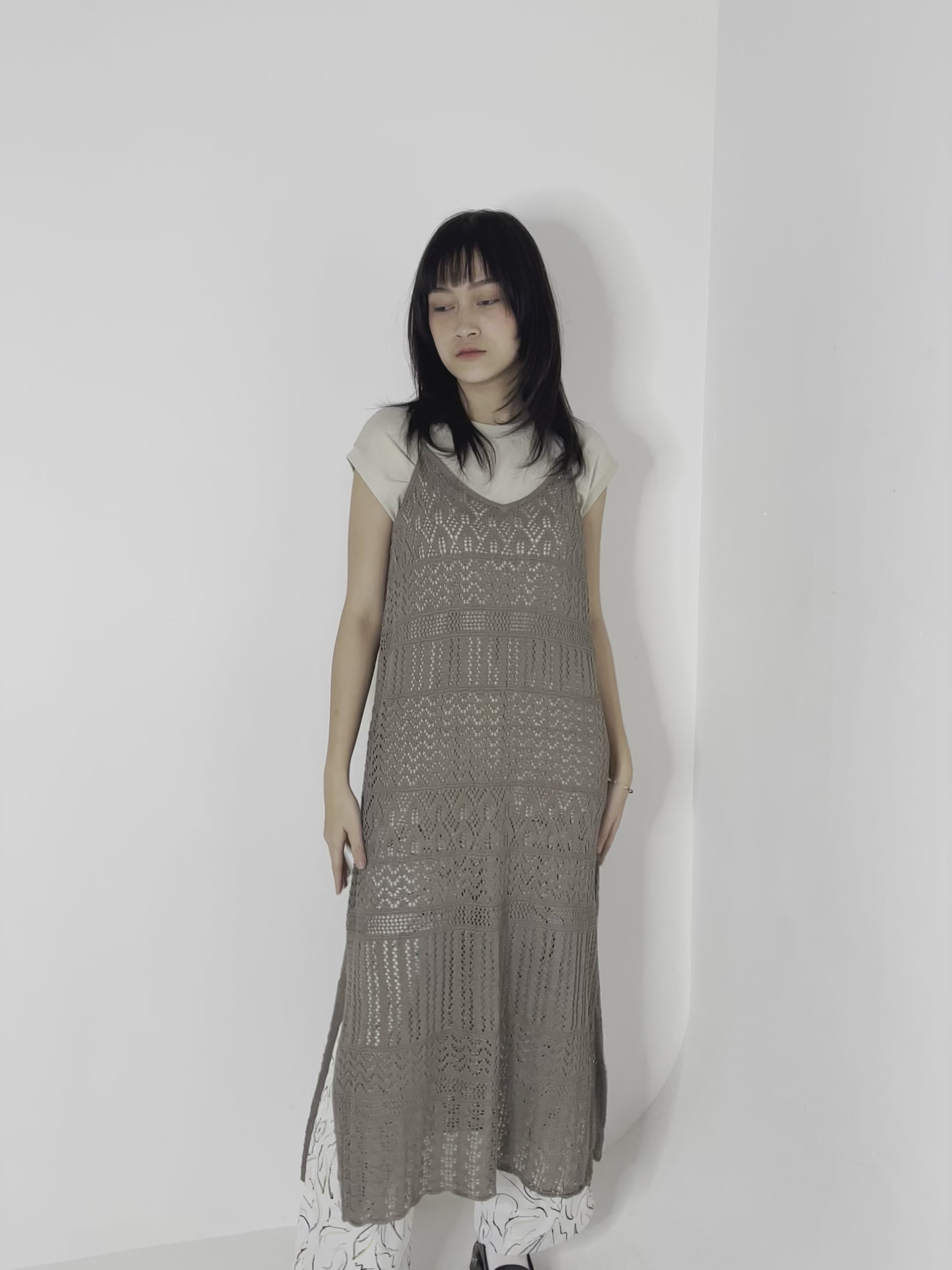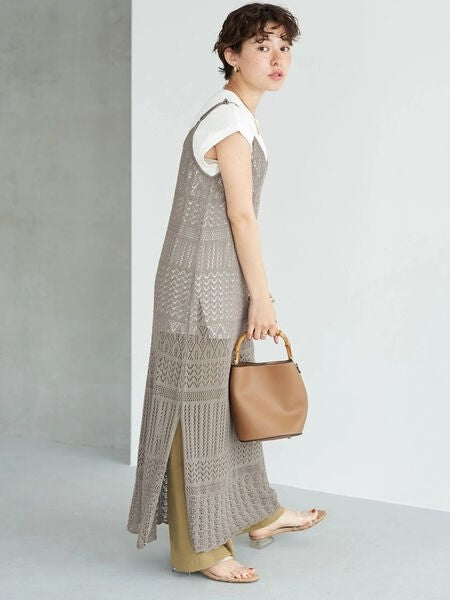 • Cami dress with  trendy crochet knit