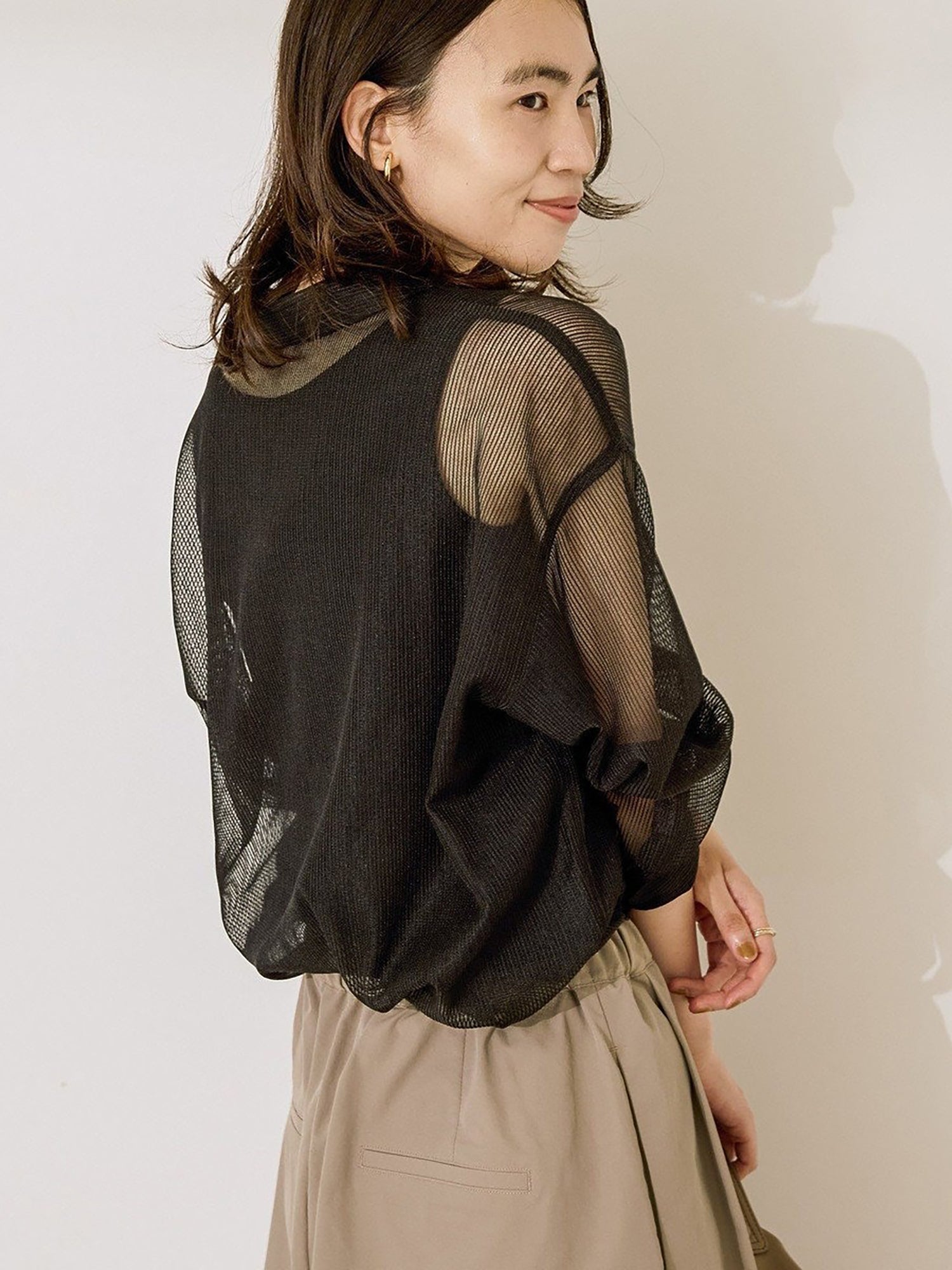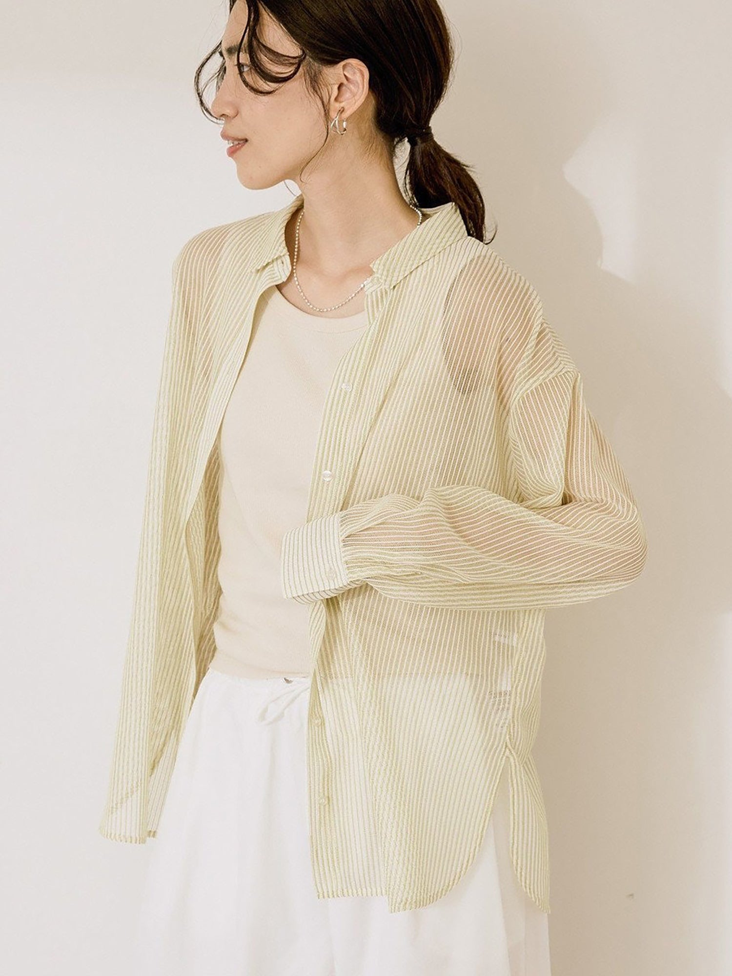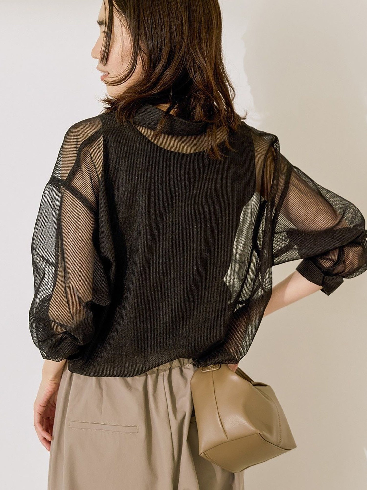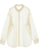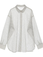 Shirt dengan desain mesh yang ringan dan fresh, cocok untuk tampilan seasonal yang effortless. Tingkat transparansi yang pas membuatnya cantik dipadukan dengan inner berwarna untuk menciptakan kontras yang menarik. Bisa dipakai sebagai atasan tertutup, outer yang dibuka, atau layering untuk berbagai gaya.