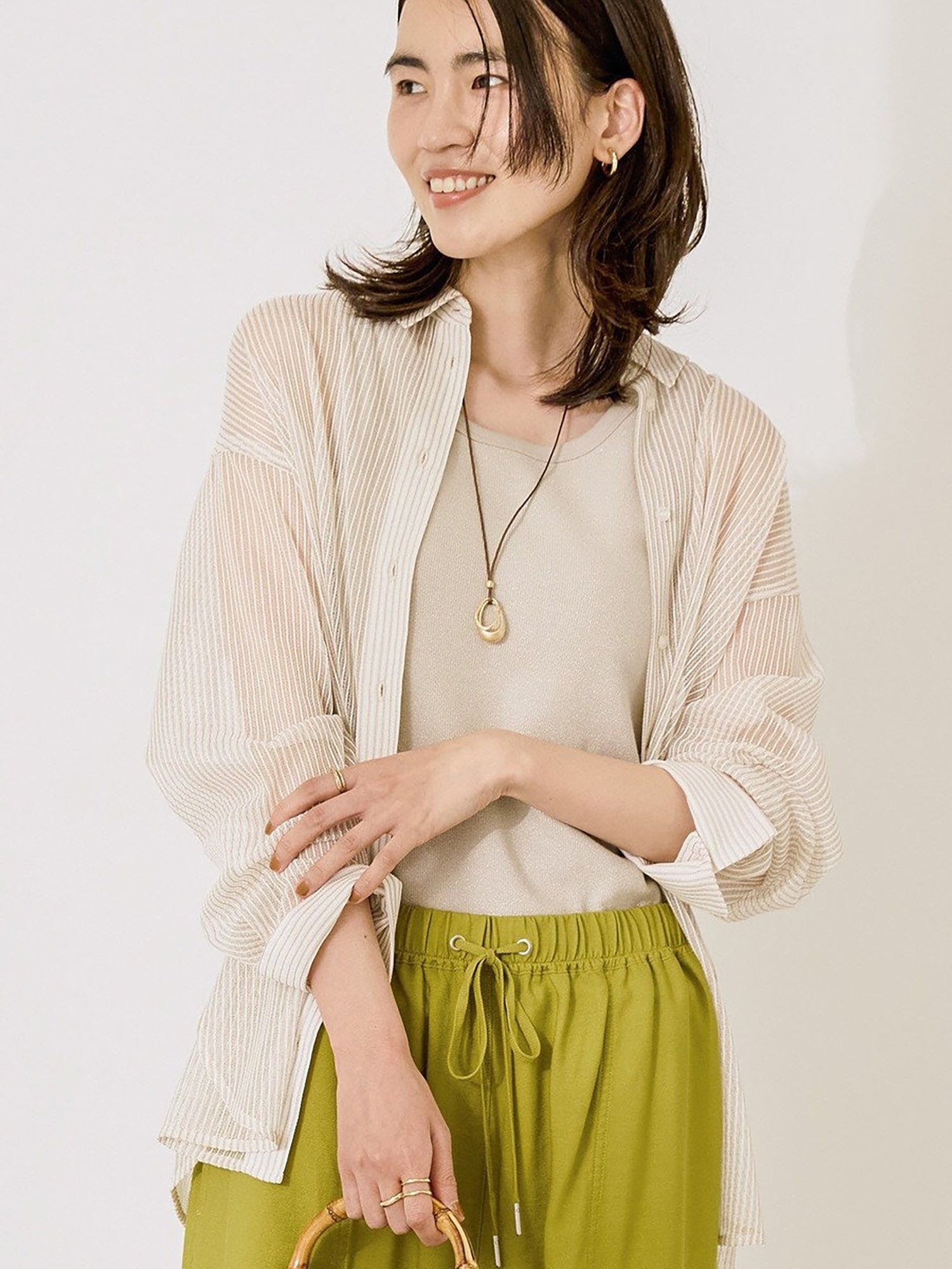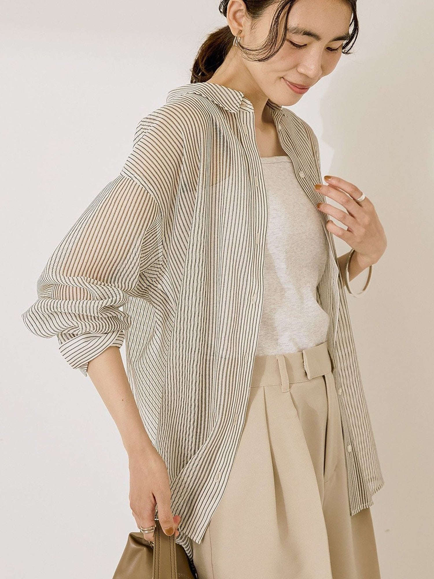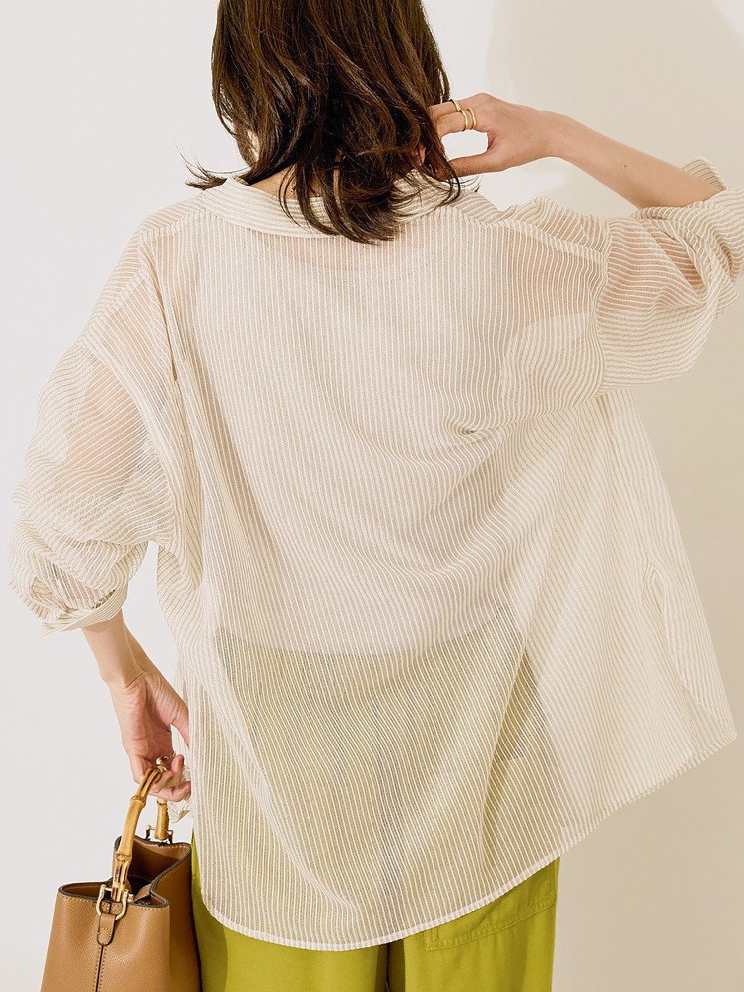 Shirt dengan desain mesh yang ringan dan fresh, cocok untuk tampilan seasonal yang effortless. Tingkat transparansi yang pas membuatnya cantik dipadukan dengan inner berwarna untuk menciptakan kontras yang menarik. Bisa dipakai sebagai atasan tertutup, outer yang dibuka, atau layering untuk berbagai gaya.