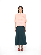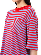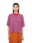 Kaos ini adalah pilihan tepat untuk Anda yang menyukai gaya kasual dengan aksen unik! Motif garis-garis yang klasik dan penuh warna memberikan kesan ceria dan dinamis pada tampilan Anda.
