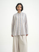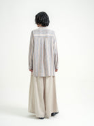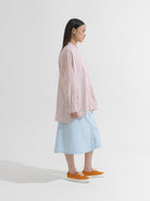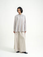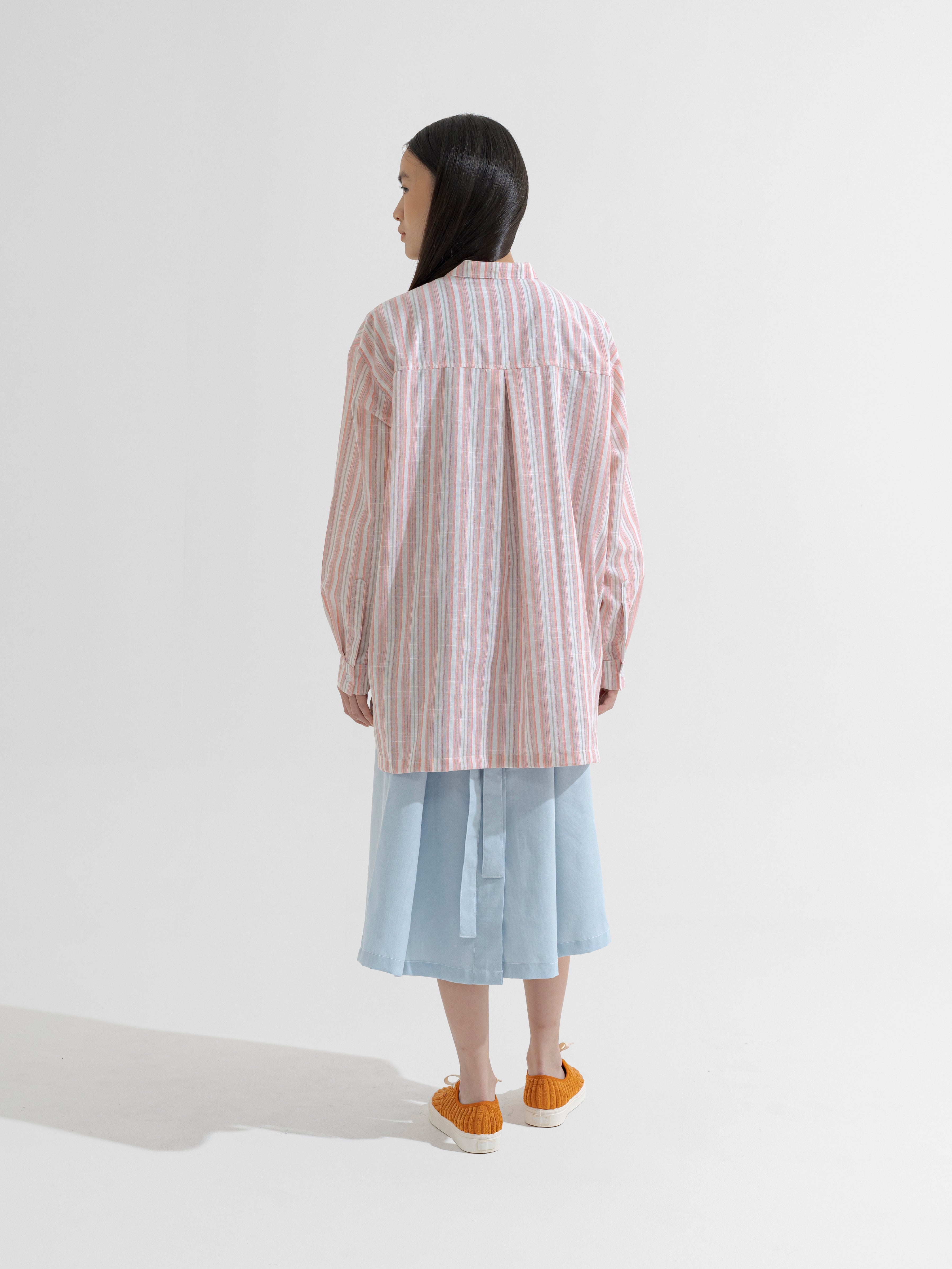 Kemeja dengan siluet relaxed dan panjang yang memberi tampilan lebih flowy dan nyaman dipakai seharian. Motif stripe yang lembut membuat look terlihat clean dan effortless, cocok untuk dipakai sendiri atau layering untuk gaya kasual hingga semi-formal.
