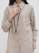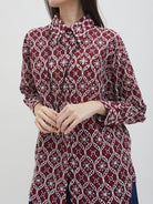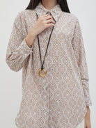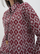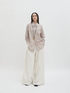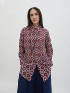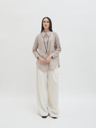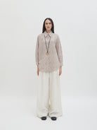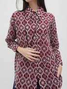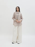 Detail kerah klasik, kancing depan, serta manset berkancing menambah kesan formal yang tetap fleksibel untuk gaya kasual. Tersedia dalam dua warna pilihan: Mocha dan Wine, yang mudah dipadukan dengan berbagai outfit.