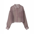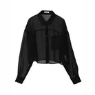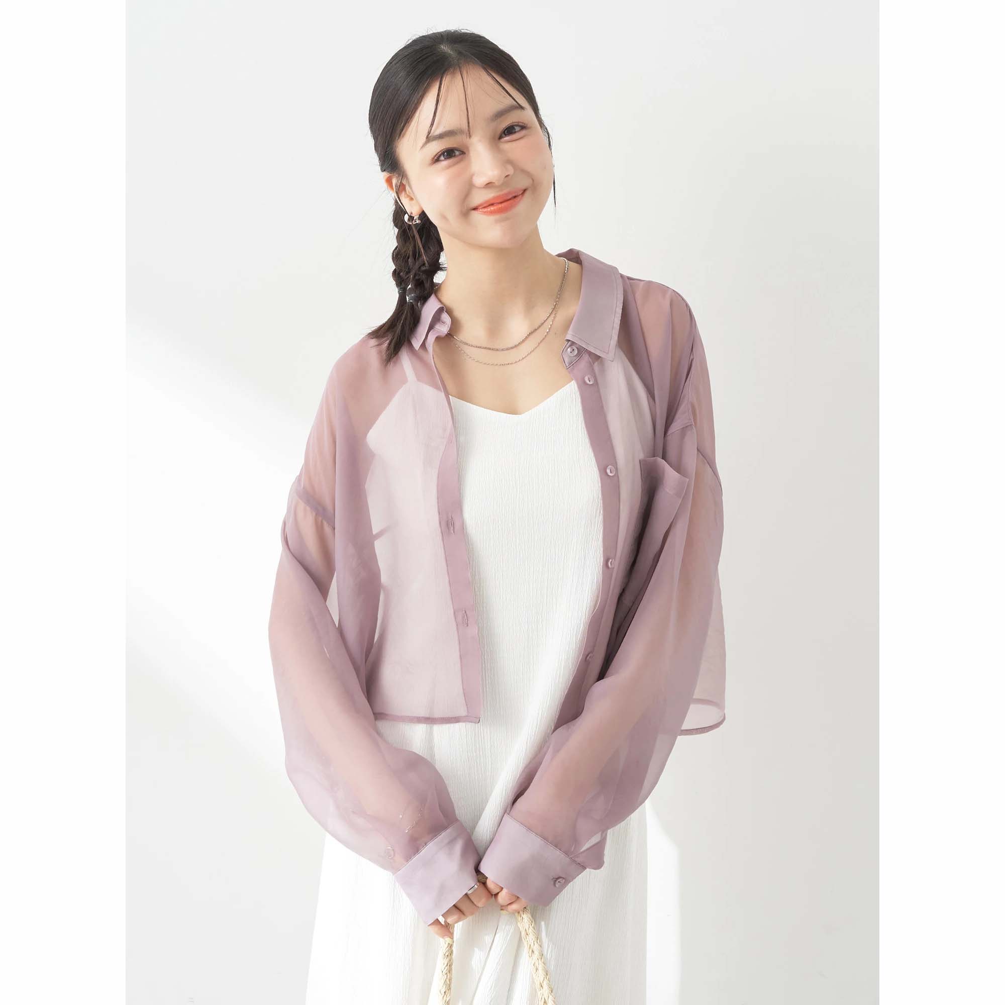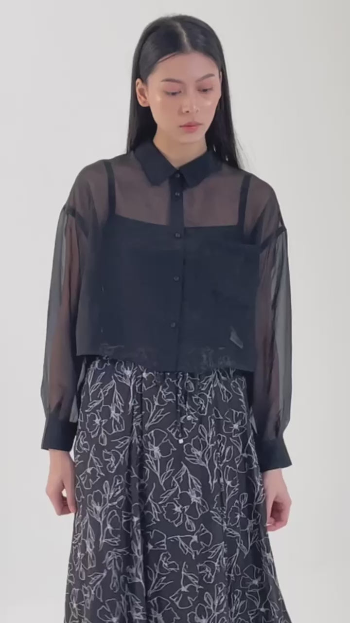 Kemeja wanita ini didesain dengan kerah kemeja dan siluet crop. Memiliki detail transparan sehingga memberikan kesan feminim. Terdapat variasi kancing di bagian lengan yang dapat disesuaikan. Terdapat satu saku pada bagian depan. Bahan yang halus dan ringan sehingga nyaman dipakai. Cocok untuk tampilan kasual dan formal.