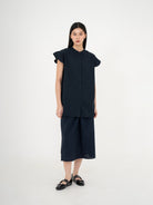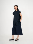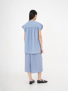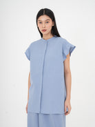 Atasan wanita lengan pendek ini di desain dengan cuttingan loose fit dengan kerah mandarin dan lengan flare. Terdapat kerutan dibagian belakang yang memberikan aksen elegan saat dikenakan. Cocok digunakan untuk berbagai kesempatan formal maupun casual, seperti hangout atau acara santai dengan teman-teman.