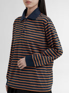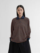 Kaos polo bergaris dengan tampilan kasual yang tetap stylish. Didesain dengan kerah kontras dan kancing depan yang memberikan sentuhan sporty. Terbuat dari bahan Combed Cotton yang lembut, nyaman, dan breathable, cocok untuk aktivitas sehari-hari. Manset rajut di pergelangan tangan menambah tampilan rapi dan modern.
