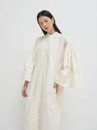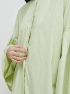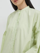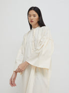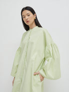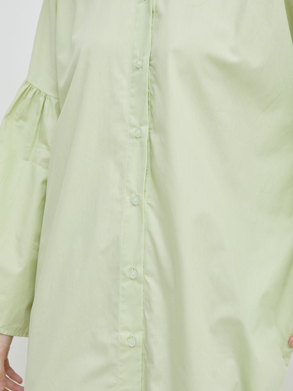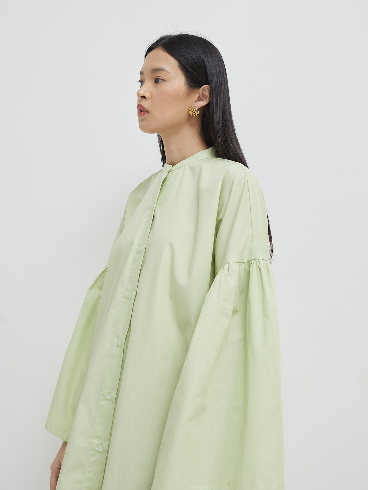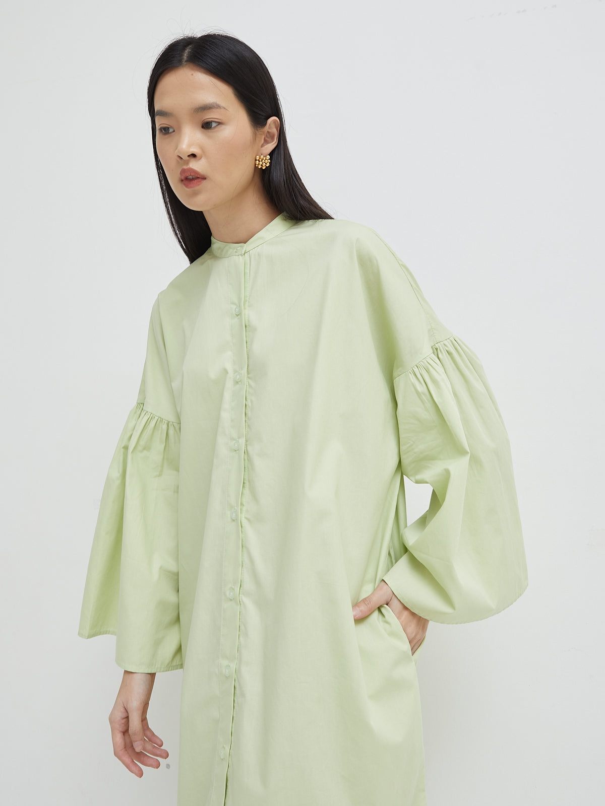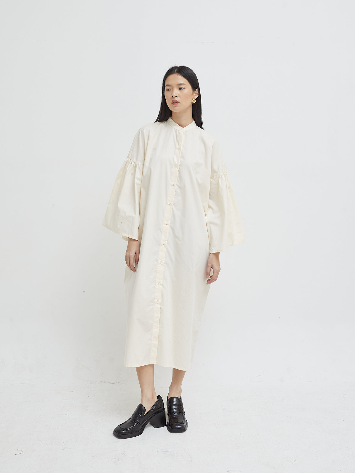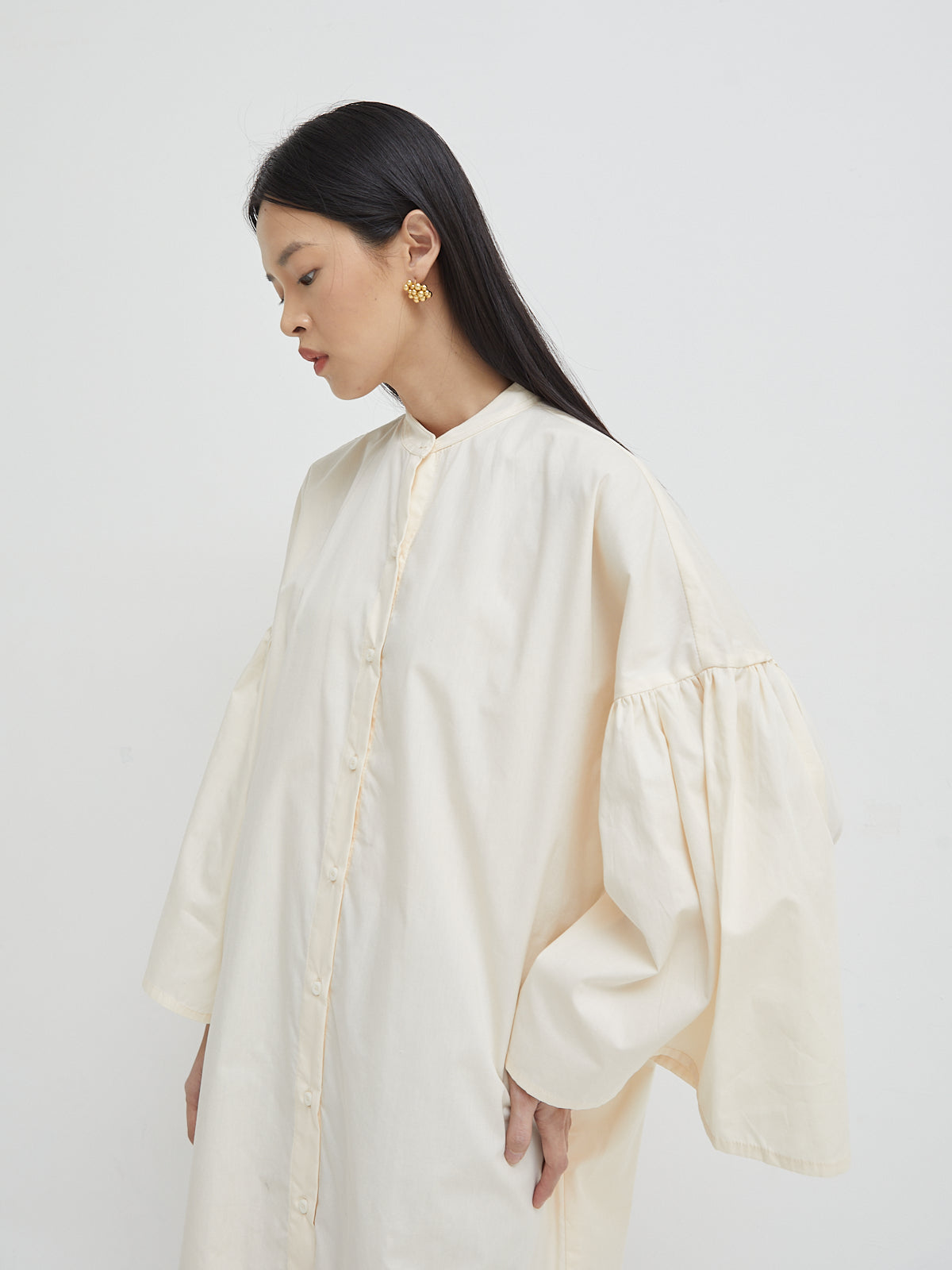 Tampil effortlessly chic dengan shirt dress oversized, memiliki desain minimalis yang tetap memancarkan kesan elegan. Potongan longgar dipadukan dengan detail lengan lebar dan aksen ruffle memberikan tampilan yang fresh dan modern namun tetap nyaman dipakai sepanjang hari. Dress ini cocok untuk tampilan kasual hingga semi-formal!