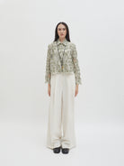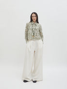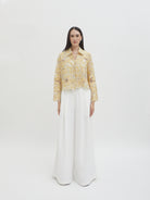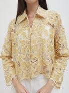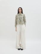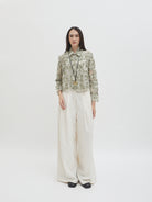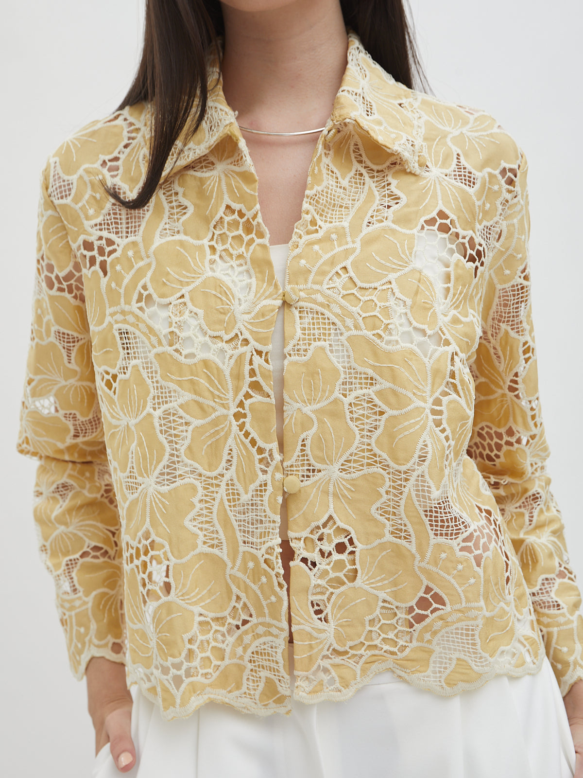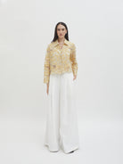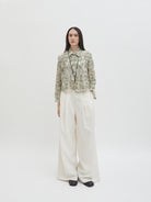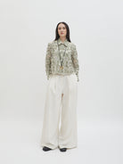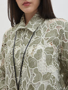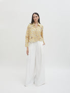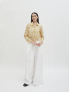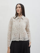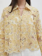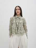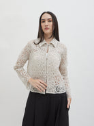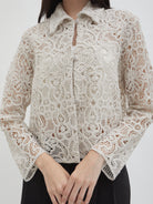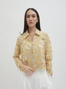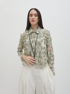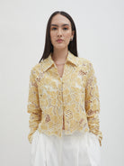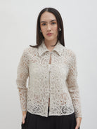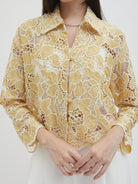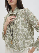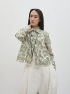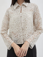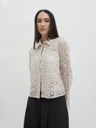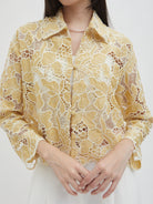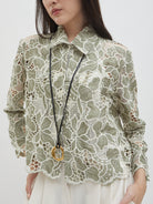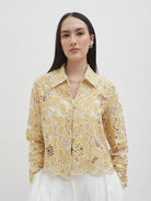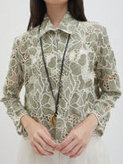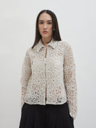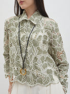 Dengan kancing depan dan kerah klasik, atasan ini cocok dipadukan dengan berbagai bawahan untuk gaya kasual maupun semi-formal. Tersedia dalam tiga pilihan warna: Olive dan Gold berbahan brocade dengan pola floral yang menonjol, serta Light Gray berbahan crochet dengan motif renda yang lebih rapat.