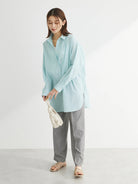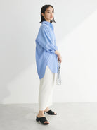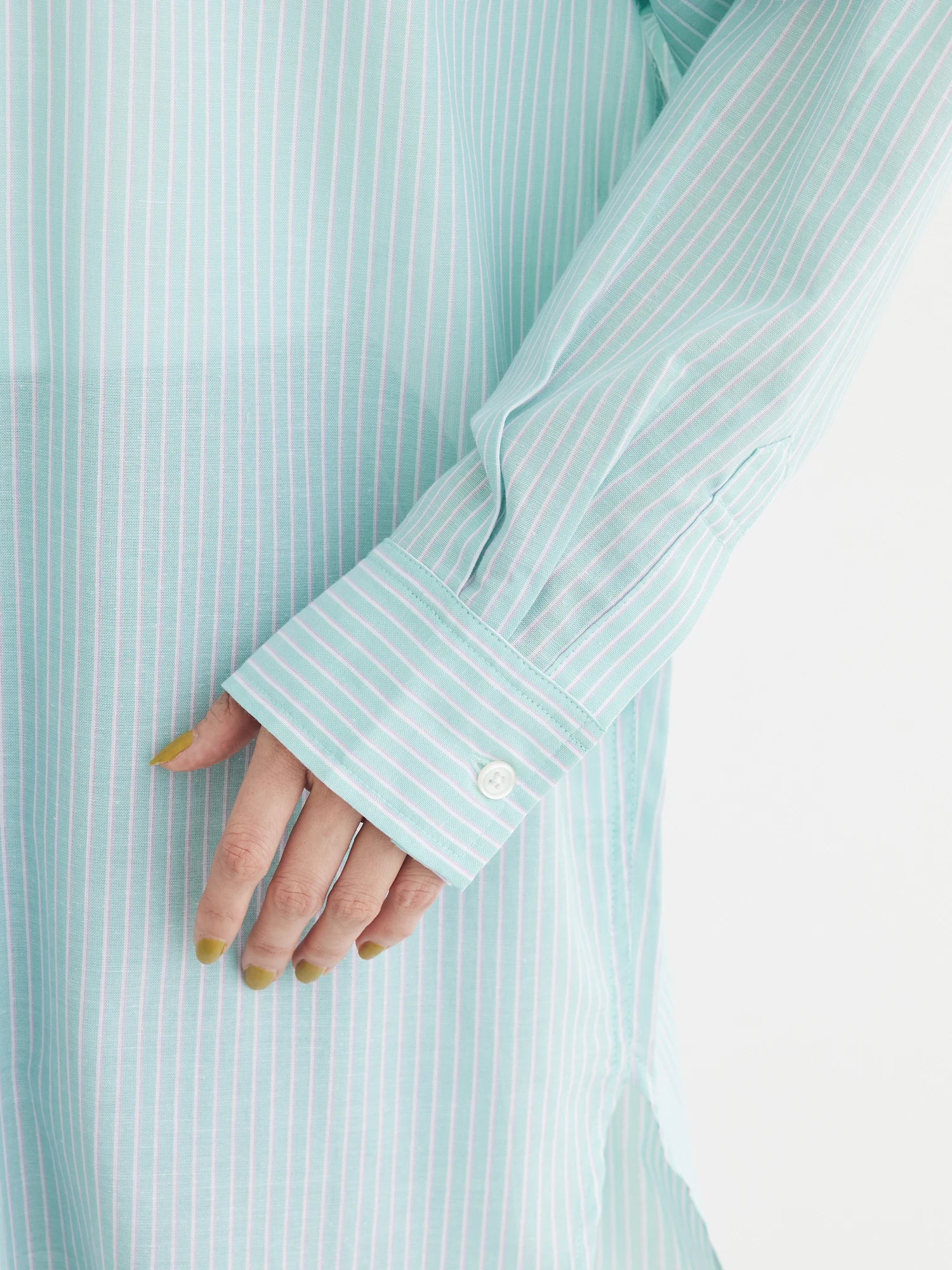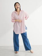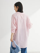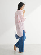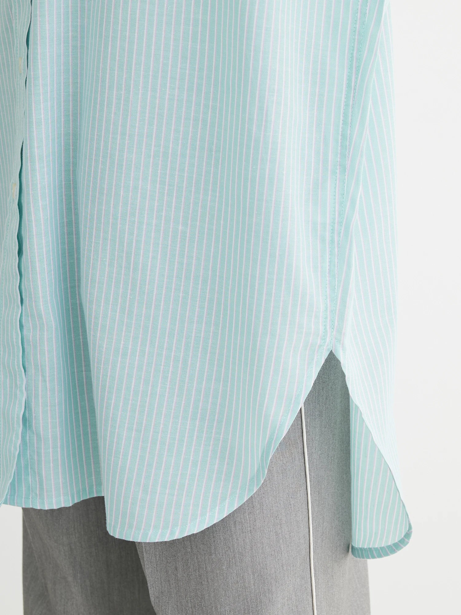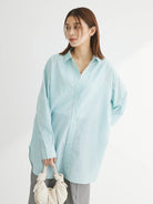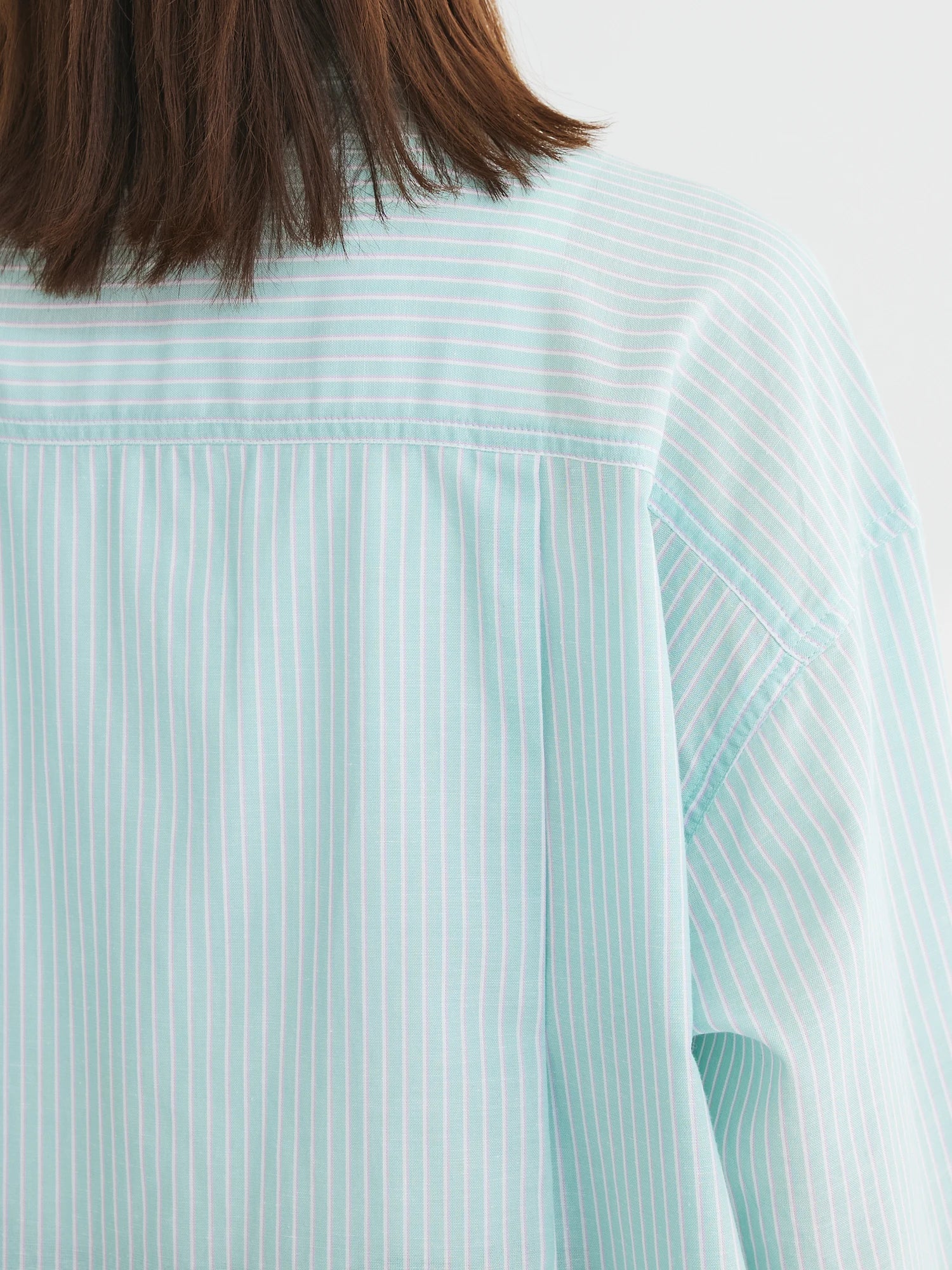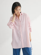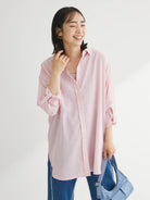 Tampil santai namun tetap modis dengan kemeja oversized yang didesain dengan motif stripe simpel namun tetap elegan. Kemeja ini sangat cocok untuk outfit kasual sehari-hari dan bisa dipadupadankan dengan skirt atau celana jeans favoritmu untuk menciptakan tampilan yang effortless. Dengan kancing hidup di bagian depan dan kancing di bagian lengan, kamu bisa dengan mudah melipat lengan kemeja untuk gaya yang lebih kasual dan nyaman.