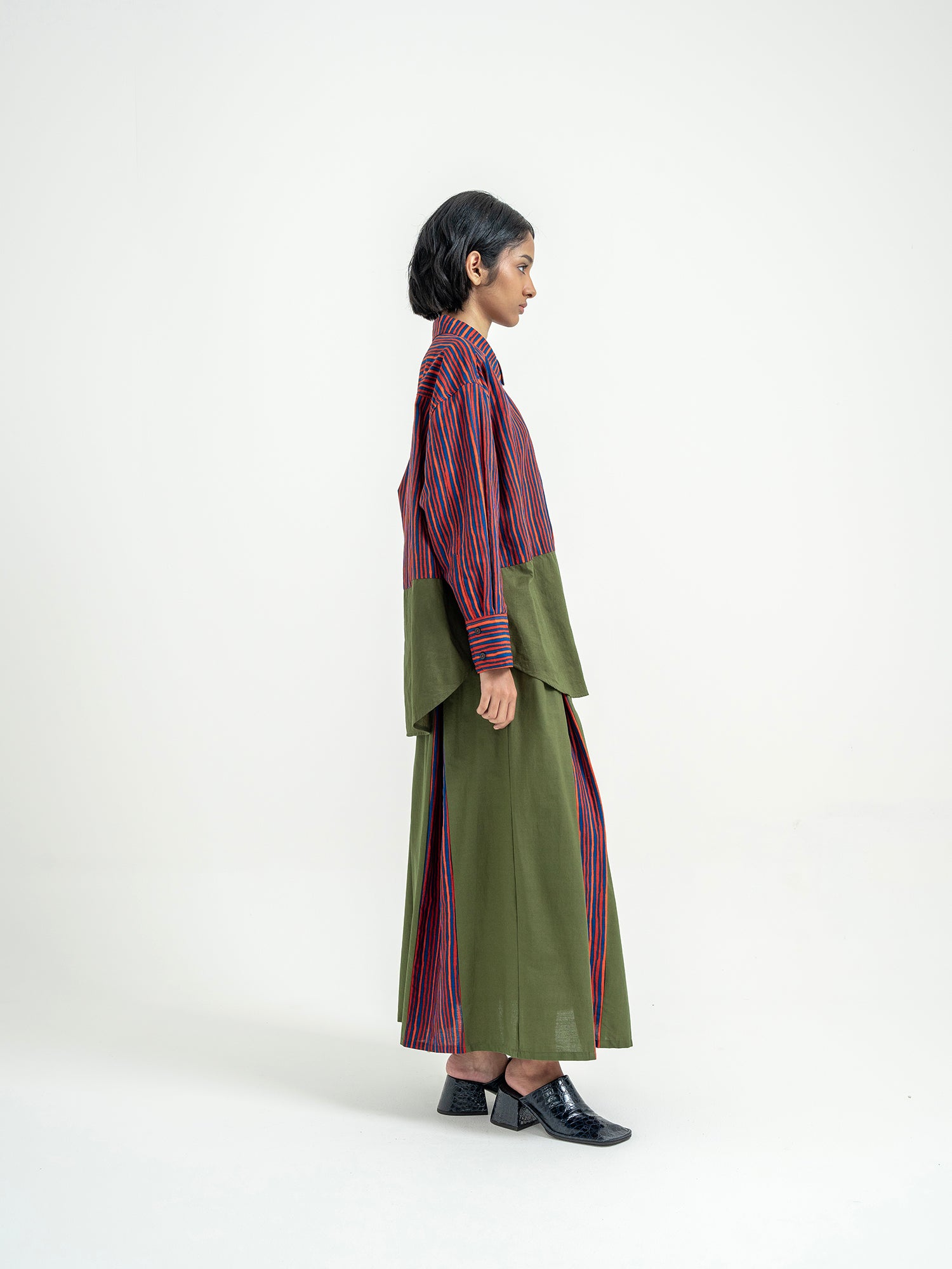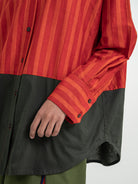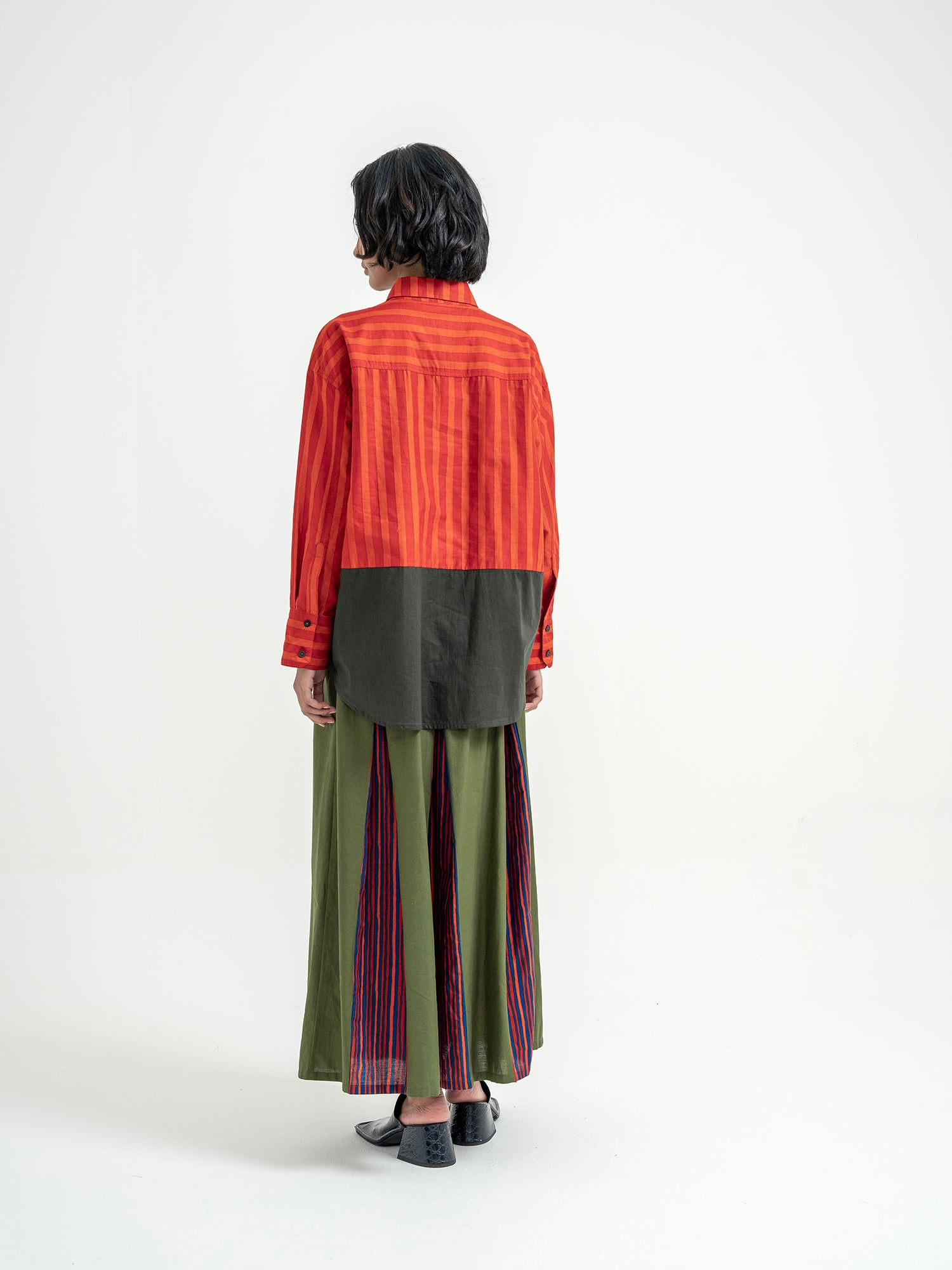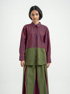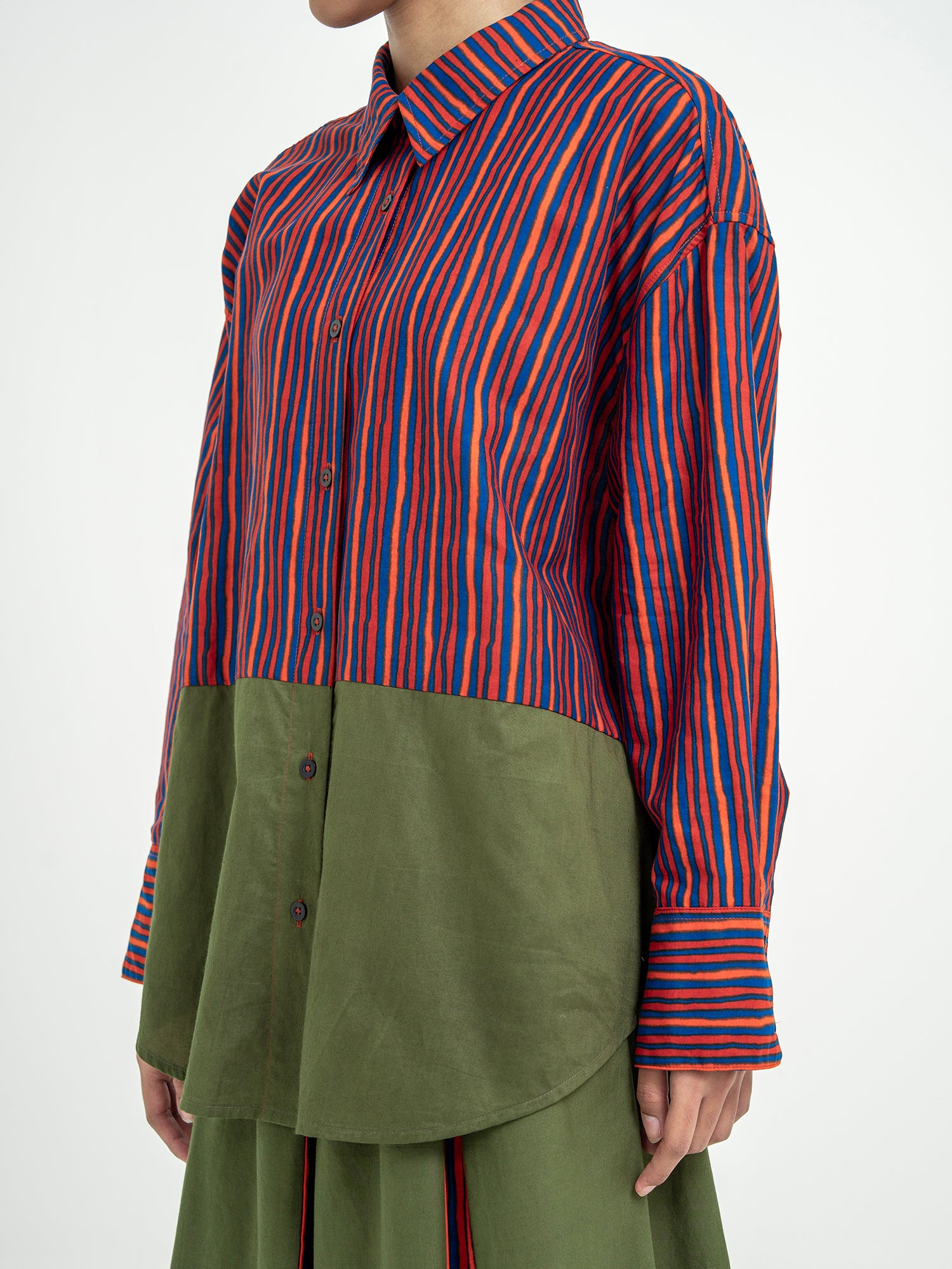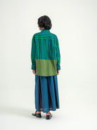 Kemeja Rhea Shirt dari BOWN Capsule Collection menampilkan desain garis vertikal bernuansa biru indigo dengan sentuhan kontras di bagian bawah. Terbuat dari 100% katun yang lembut dan breathable, kemeja ini memberikan tampilan kasual namun tetap elegan. Potongan longgar dan siluet boxy menciptakan kenyamanan maksimal, cocok dipadukan dengan rok maupun celana untuk tampilan santai yang berkarakter.