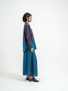 Setiap potongan dibuat dengan tangan menggunakan teknik hand screen-printing, menghasilkan warna-warna indigo yang kaya dan dalam di atas bahan katun lembut 100%. Proses ini mencerminkan perpaduan antara keahlian tradisional Indonesia dan desain modern yang ringan serta mudah dikenakan.