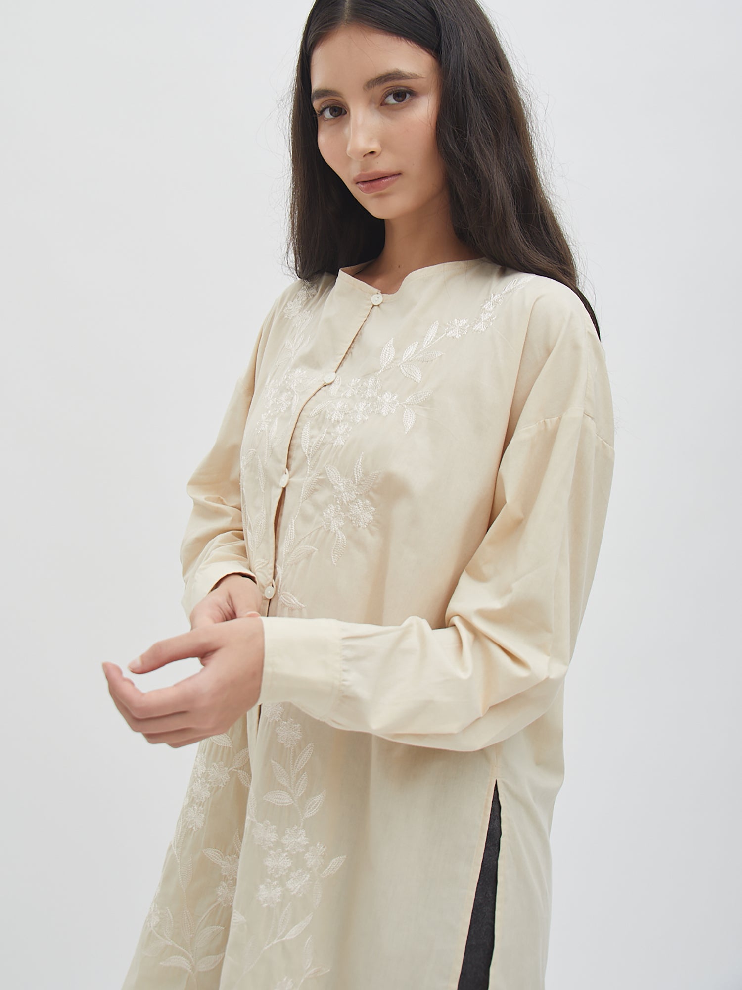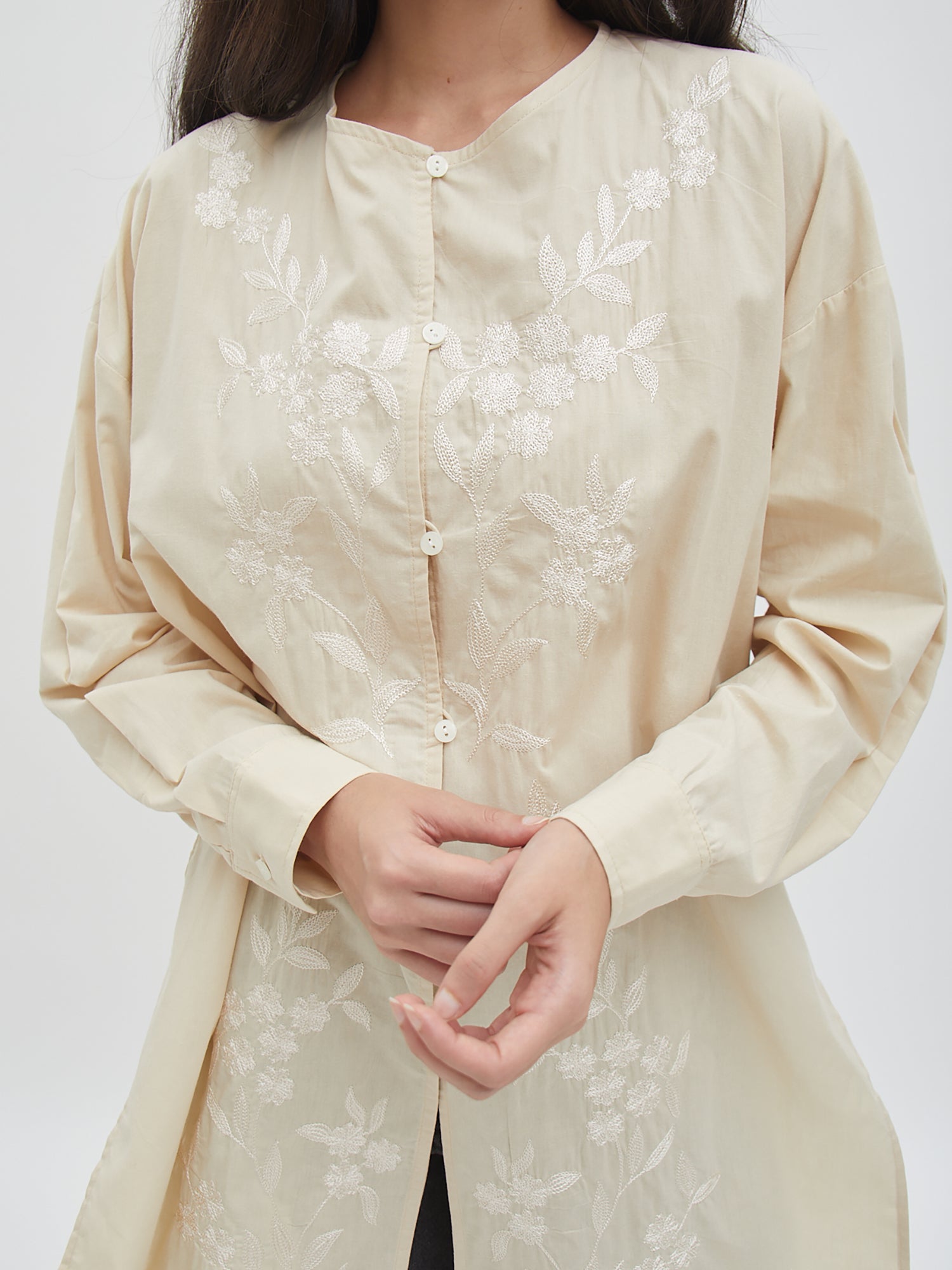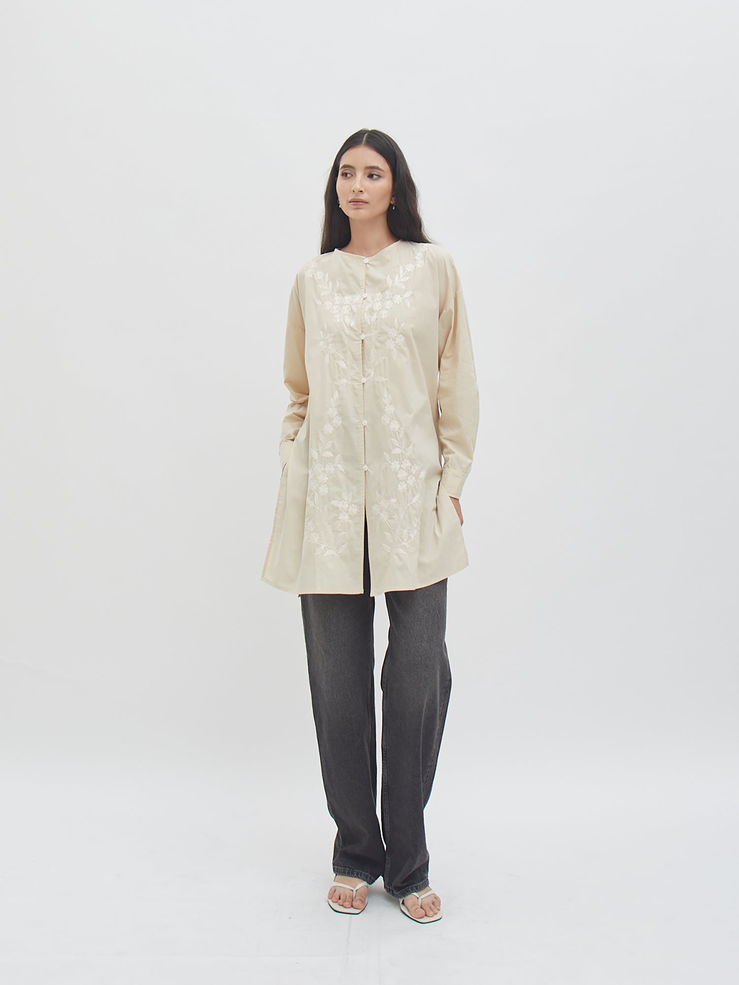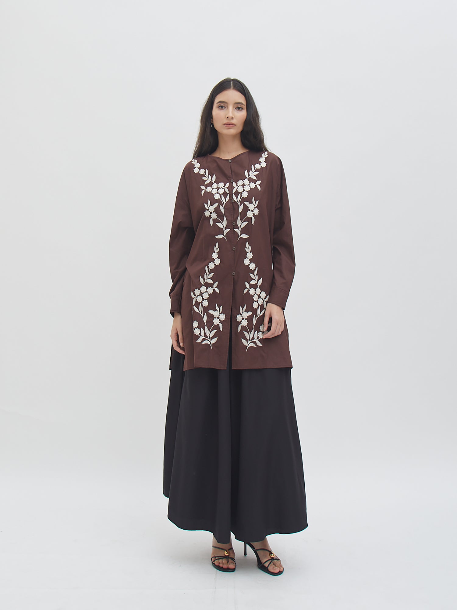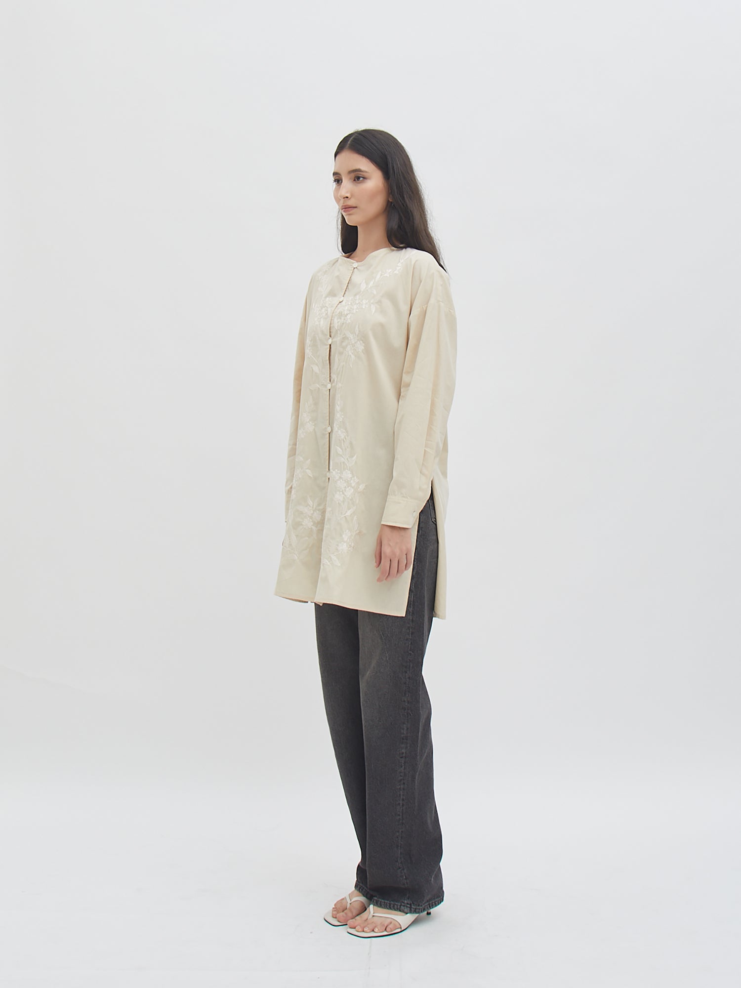 Savoy Shirt adalah kemeja panjang dengan siluet relaxed yang memberikan tampilan rapi namun tetap nyaman dipakai. Detail embroidery pada bagian depan menambah kesan elegan tanpa terasa berlebihan, cocok untuk berbagai suasana. Mudah dipadukan dengan celana atau rok favorit untuk tampilan sehari-hari maupun acara semi-formal.