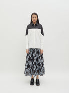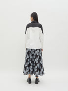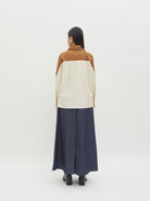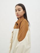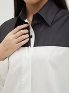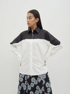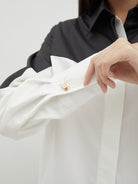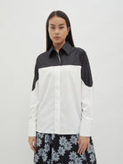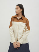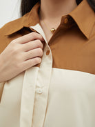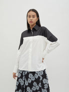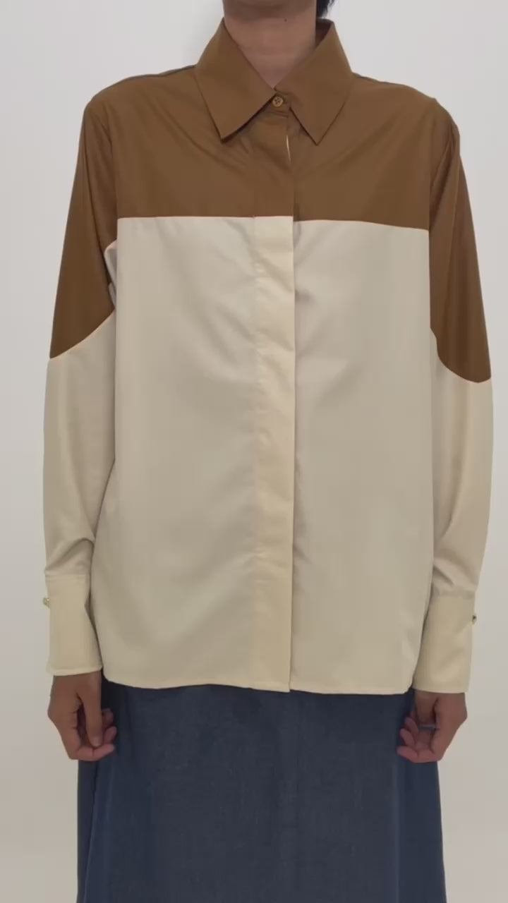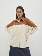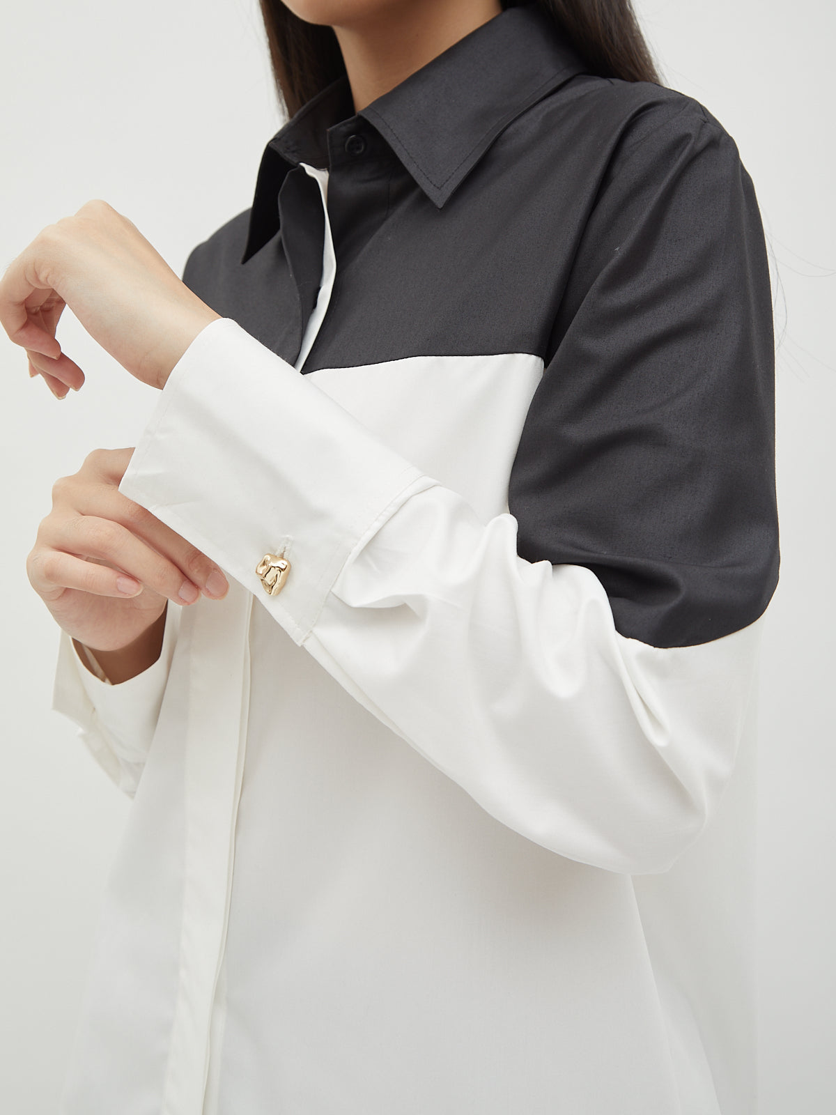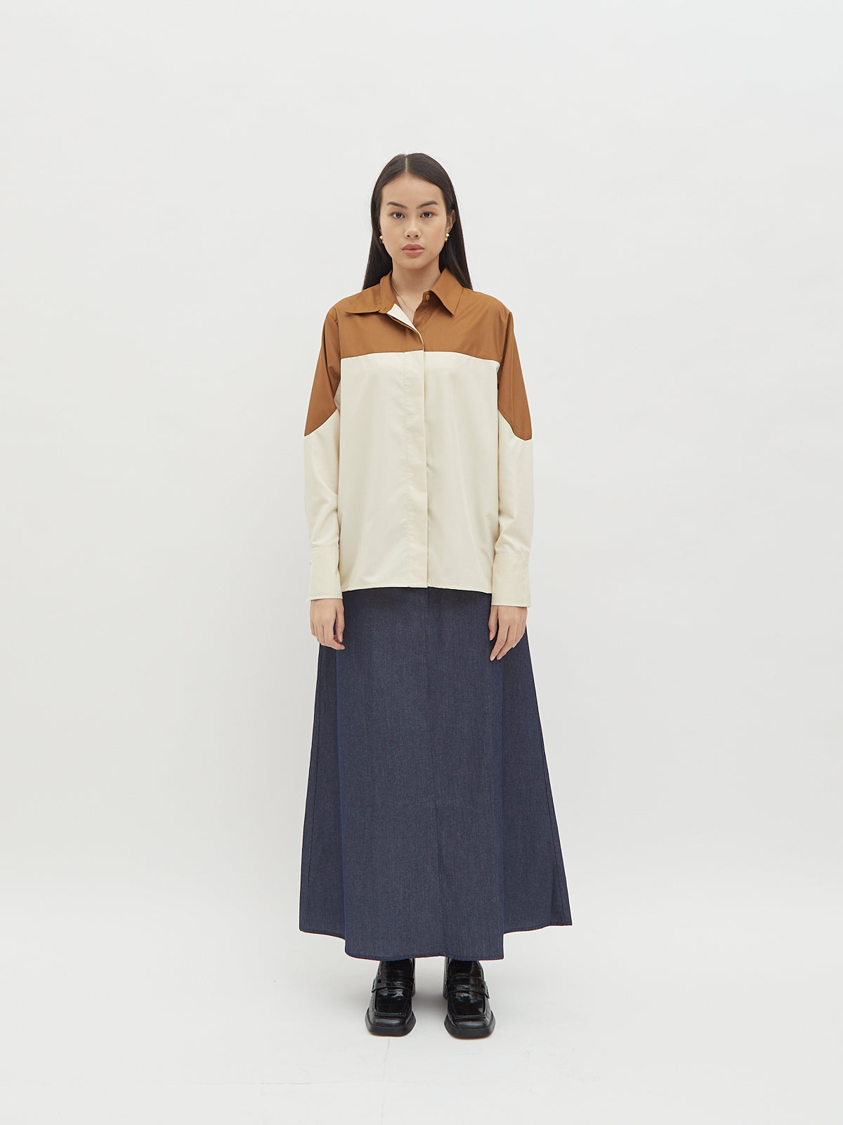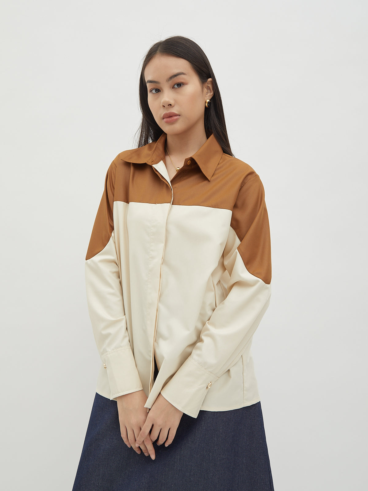Kemeja wanita lengan panjang ini didesain dengan kerah kemeja. Memiliki full kancing di bagian depan. Terdapat saku di bagian depan. Kombinasi warna yang berbeda memberikan kesan yang elegan. Bahannya halus dan ringan sehingga nyaman saat dipakai. Cocok dipakai untuk acara formal dan kasual.