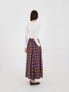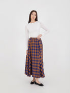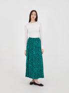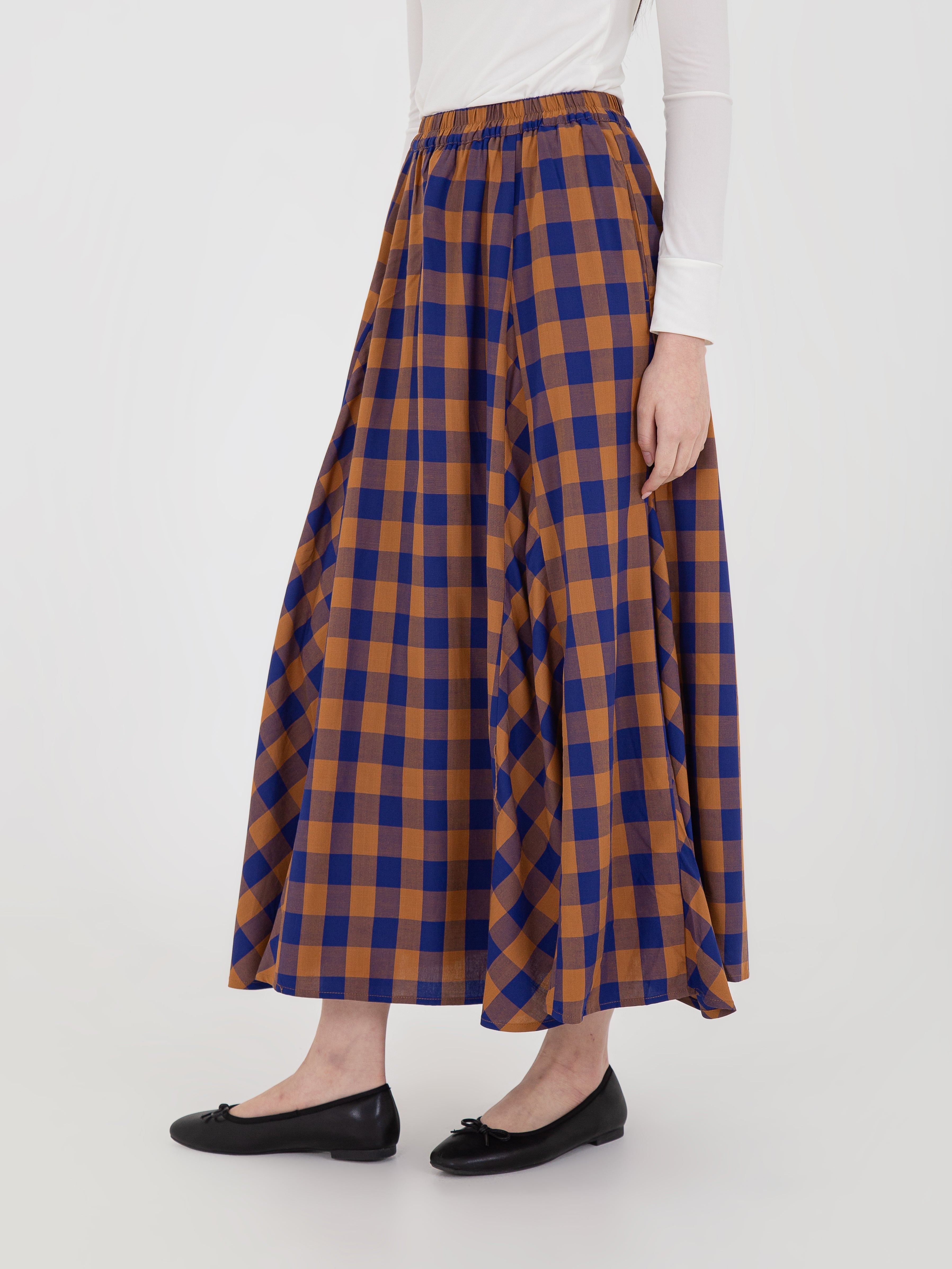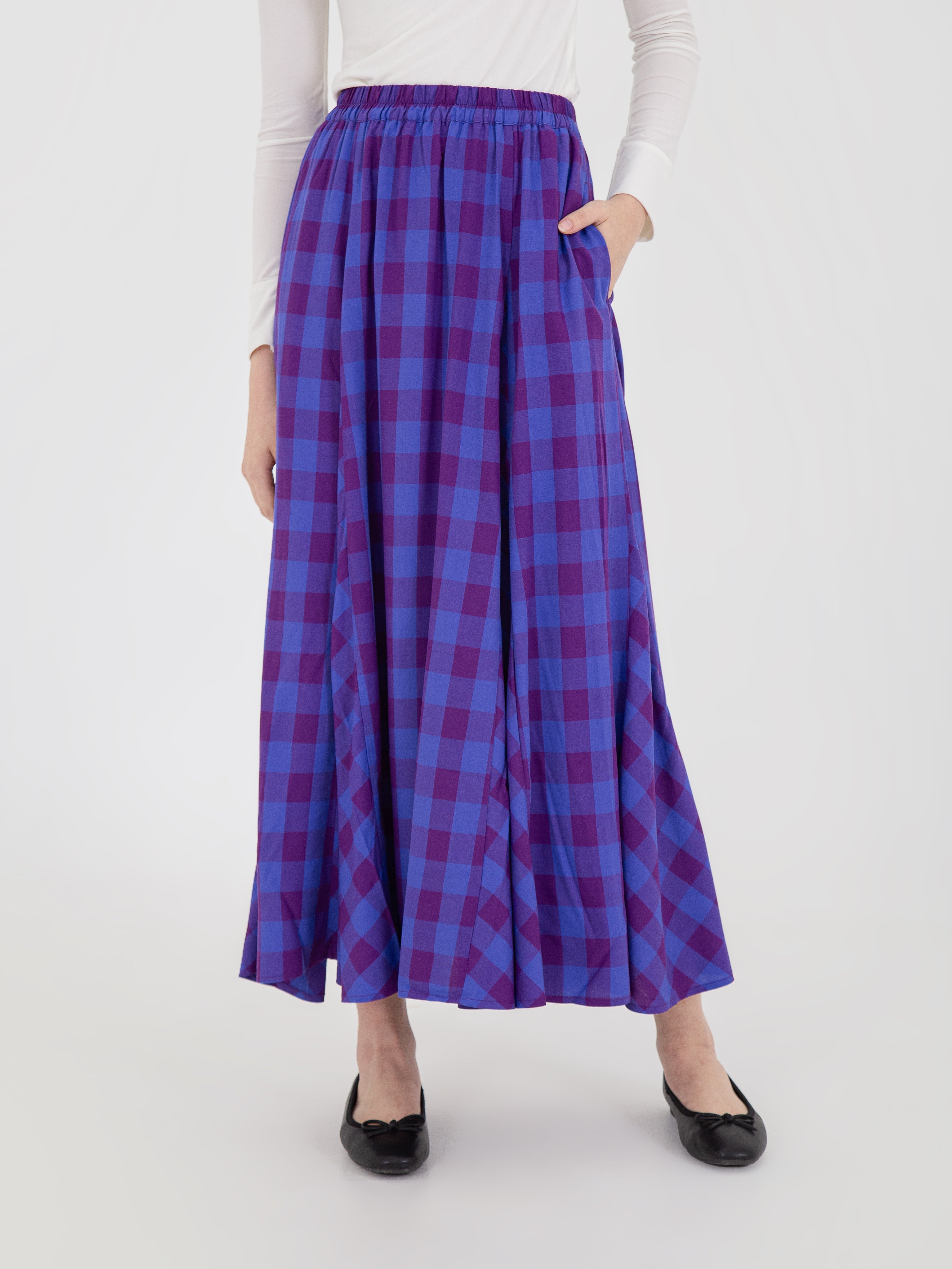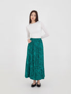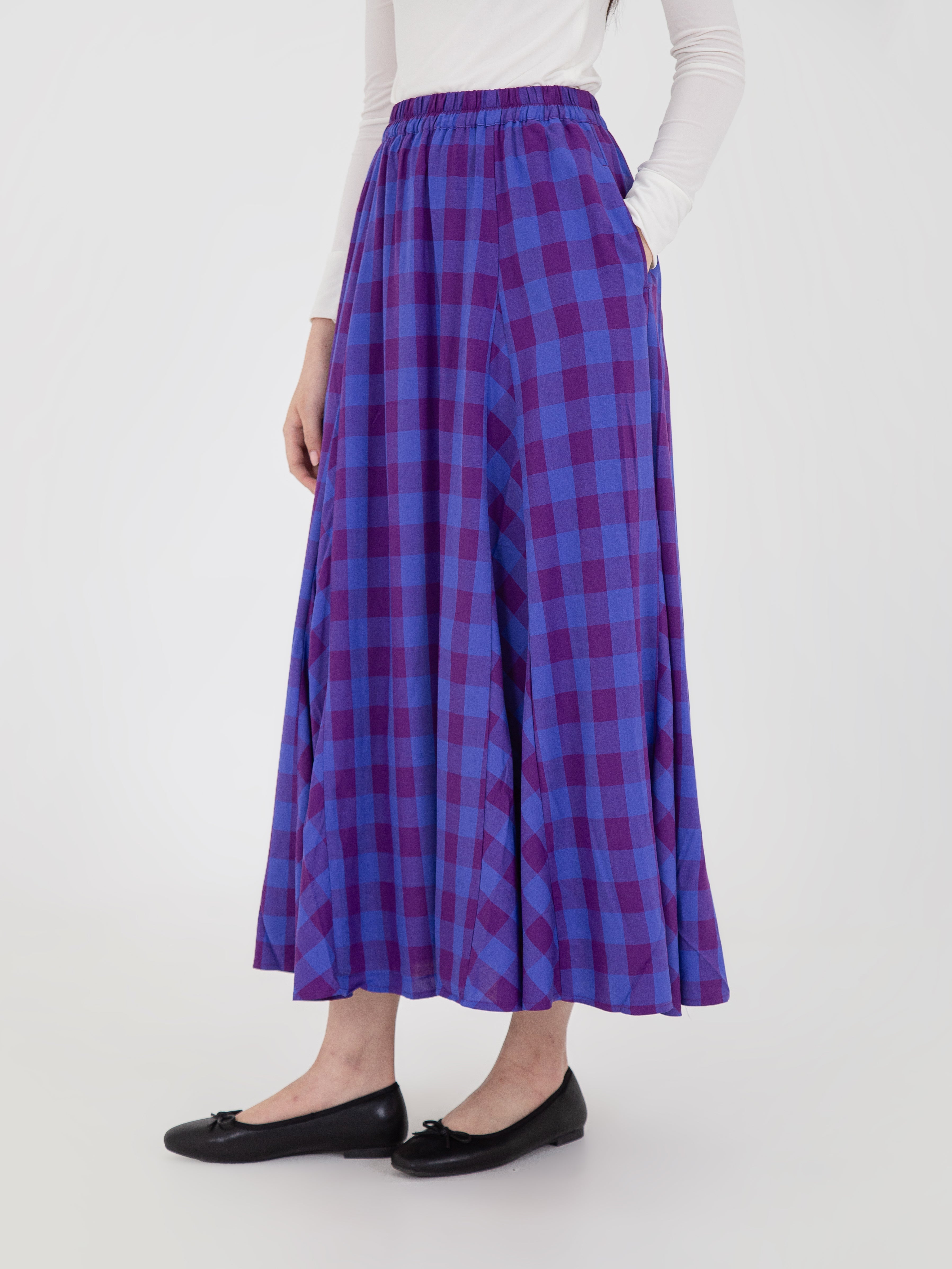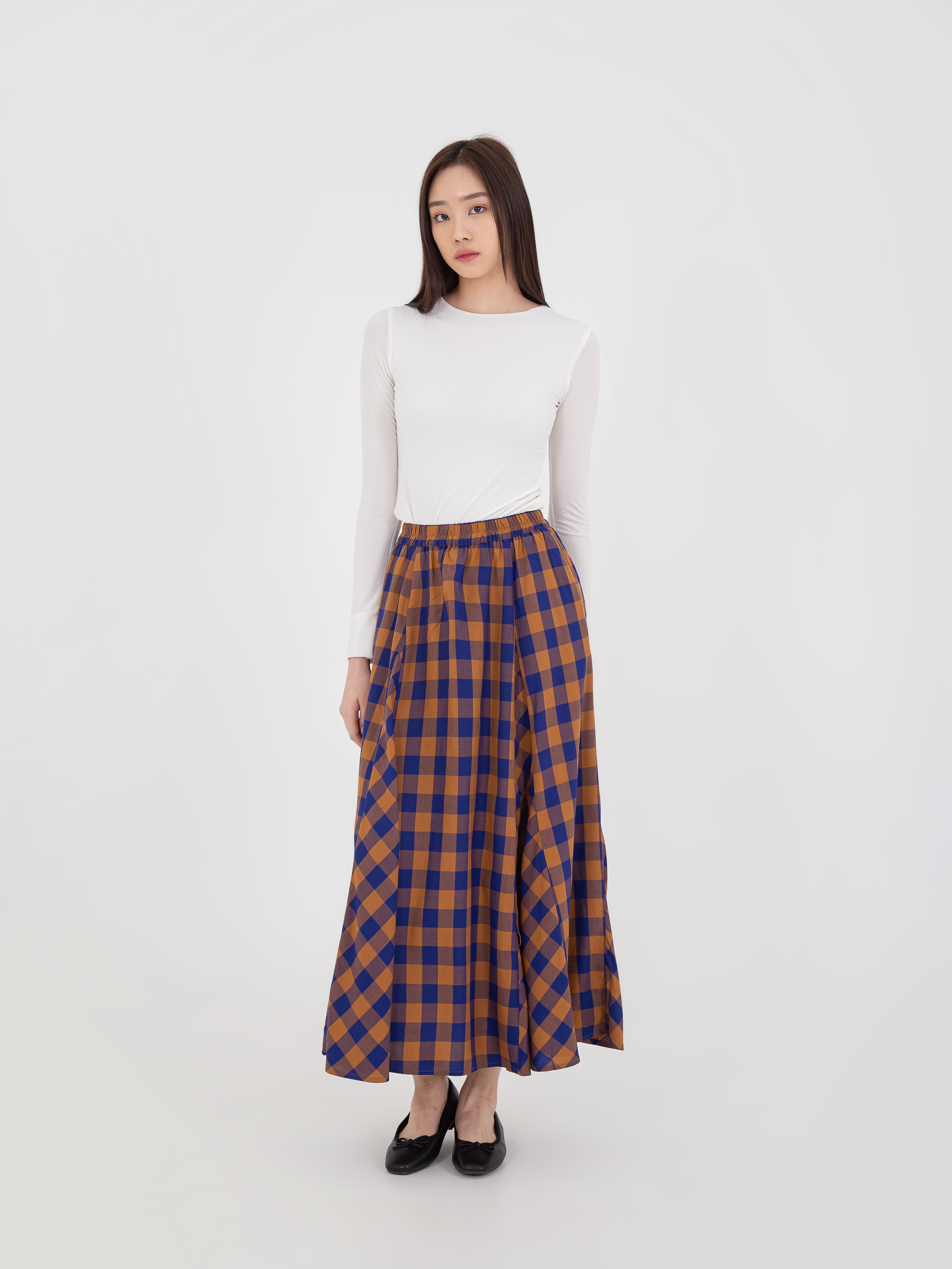Rok ini didesain dengan volume yang melebar pada bagian bawah sehingga memberikan kesan yang feminim. Rok ini terdapat kain pada lapisan dalam sehingga tidak tembus pandang, juga full karet elastis pada bagian pinggang. Terdapat saku pada bagian samping, cocok dipadukan dengan kemeja untuk tampilan formal maupun sweatshirt untuk tampilan kasual.