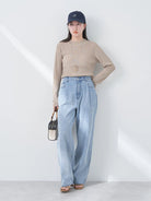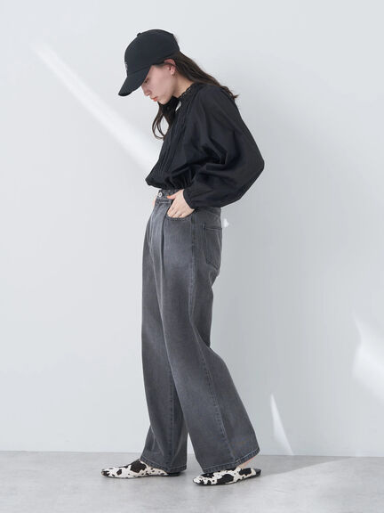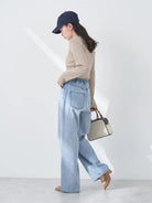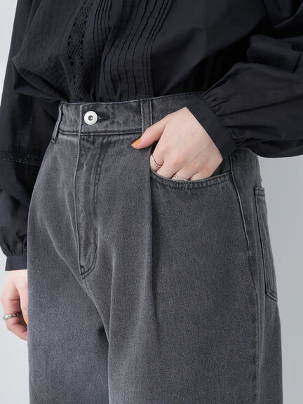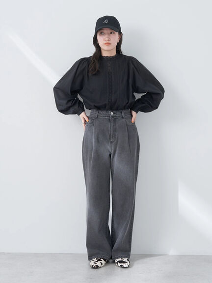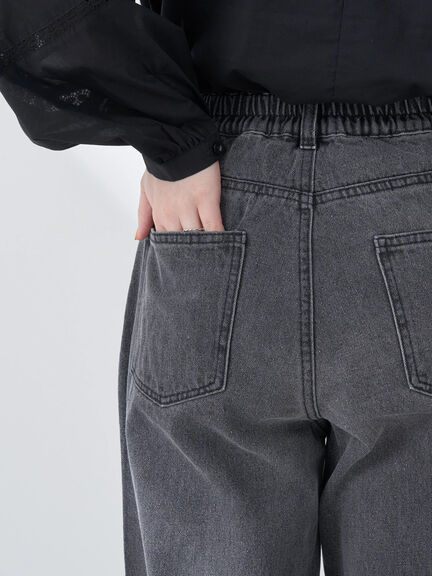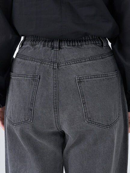 Celana denim dengan pola cutting yang loose sehingga sangat nyaman saat dikenakan, terdapat zipper dan kancing pada bagian depan juga karet pada bagian belakang pinggang dan saku yang berfungsi pada bagian depan dan belakang.