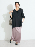 Blus dengan bahan georgette yang halus dan jatuh, memberi kesan ringan saat dipakai. Detail neckline model skipper membantu tampilan leher terlihat lebih jenjang, sementara siluet oversized-nya nyaman dan tetap terlihat rapi. Lengan bervolume dengan aksen lipit membuat look lebih elegan, cocok dipakai sendiri atau dijadikan outer dengan kancing depan dibuka.