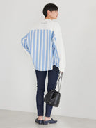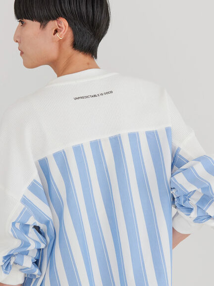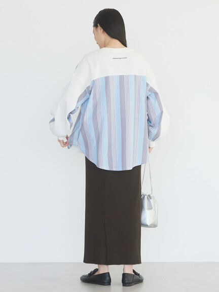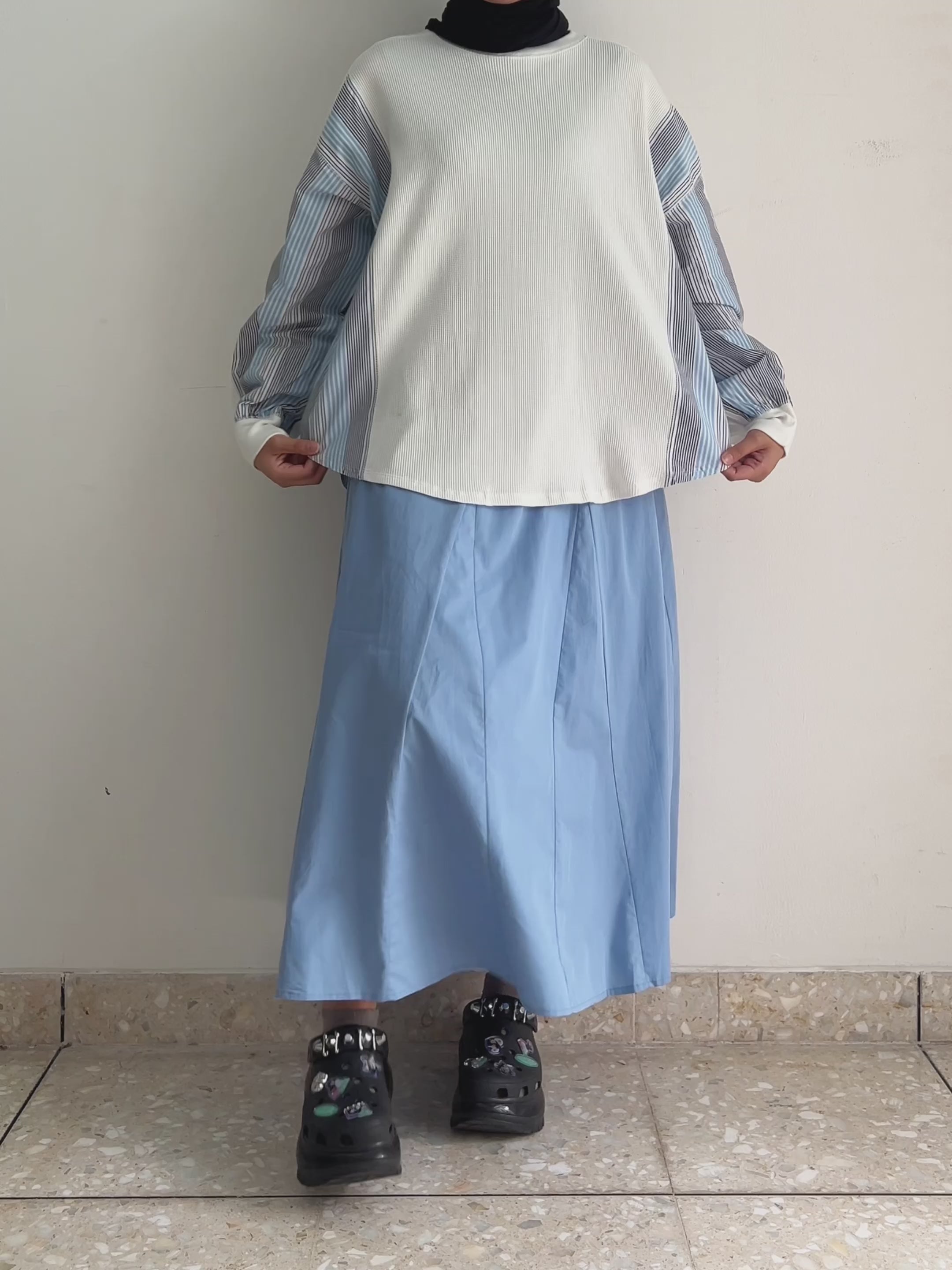Atasan wanita ini di desain dengan 2 jenis bahan yang berbeda sehingga memberikan kesan yang unik dan eye catching! Padukan dengan celana untuk tampilan kasual maupun rok untuk tampilan yang lebih feminin.