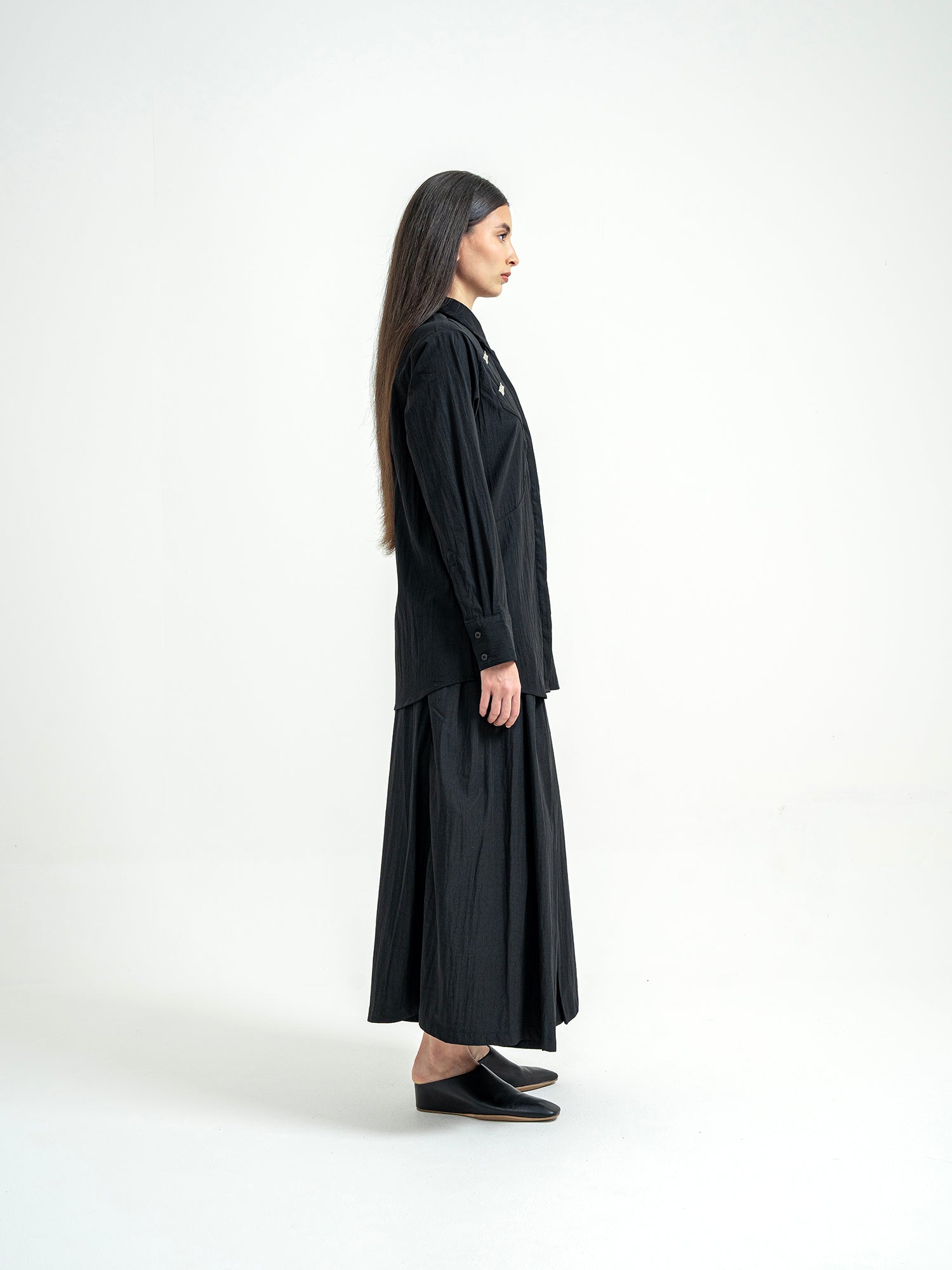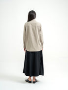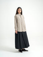 Kemeja dengan desain clean dan siluet lurus yang memberi kesan rapi namun tetap ringan saat dipakai. Detail aksen di bagian depan menambah karakter tanpa terlihat berlebihan, cocok untuk tampilan formal maupun smart casual.