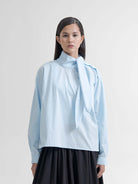 Blouse elegan dengan aksen pita pada leher yang memberikan sentuhan feminin dan chic. Didesain dengan potongan longgar dan bahan katun poplin yang lembut serta nyaman dikenakan. Kancing di bahu memudahkan pemakaian sekaligus menambah detail menarik pada tampilan.