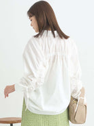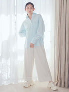 Kemeja dengan potongan longgar dan detail serut di bagian belakang yang menambah volume serta sentuhan feminin. Dilengkapi dengan kantong dada dan tali di ujung lengan yang bisa diikat untuk tampilan lebih rapi. Terbuat dari bahan ringan dan nyaman dipakai sepanjang hari, cocok untuk tampilan kasual hingga semi-formal.