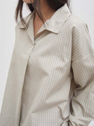 Blouse dengan motif garis vertikal yang memberikan kesan ramping dan modern. Didesain dengan potongan longgar serta bahan ringan yang lembut di kulit, membuatnya nyaman digunakan untuk aktivitas sehari-hari. Detail kerah dan kancing depan menambah sentuhan rapi namun tetap effortless — cocok untuk tampilan kasual chic maupun semi-formal.