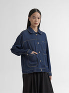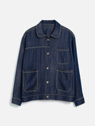 Jaket denim bernuansa modern dengan desain clean dan detail jahitan kontras yang menambah karakter pada tampilan. Dilengkapi dengan kerah klasik dan tiga kantong depan yang fungsional, memberikan kesan kasual namun tetap rapi.